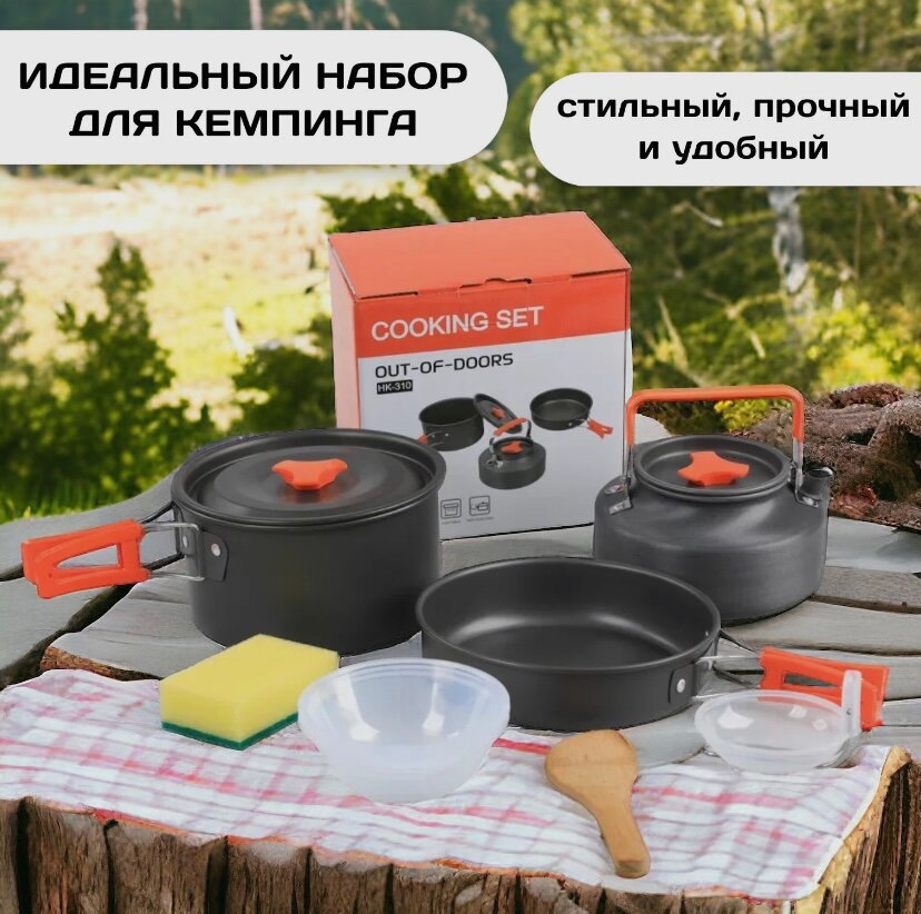 Купить Набор туристической посуды, Походный набор посуды, 10 предметов, для кемпинга, похода, рыбалки, пикника, складной