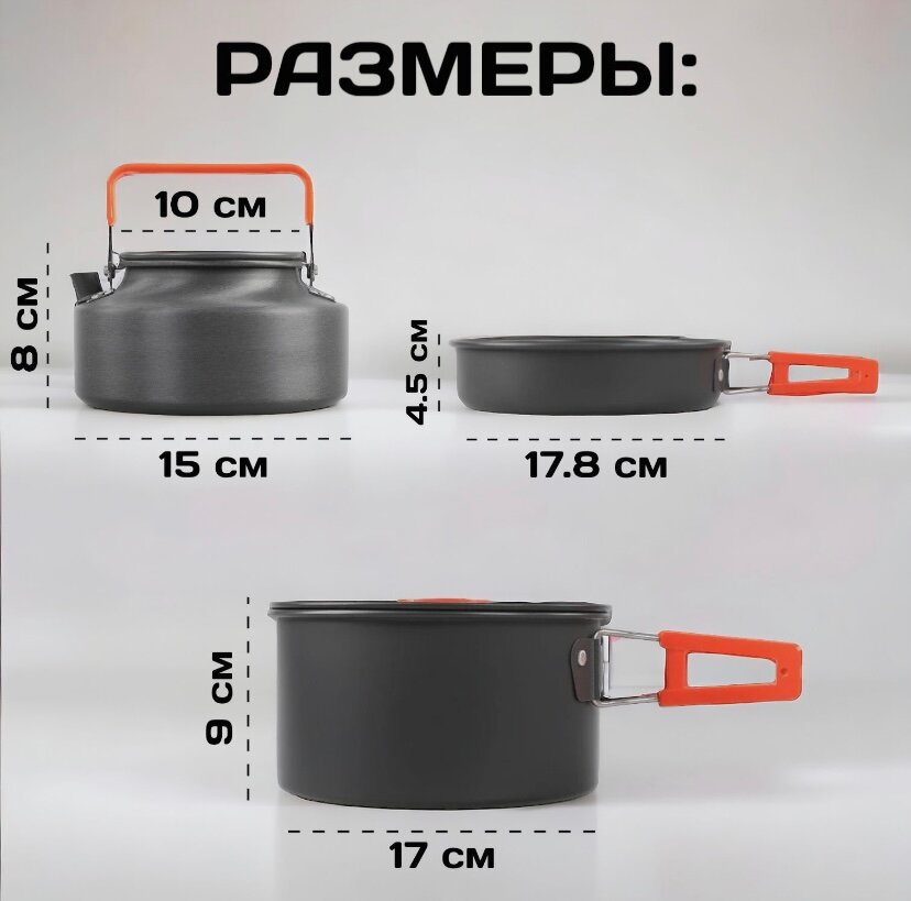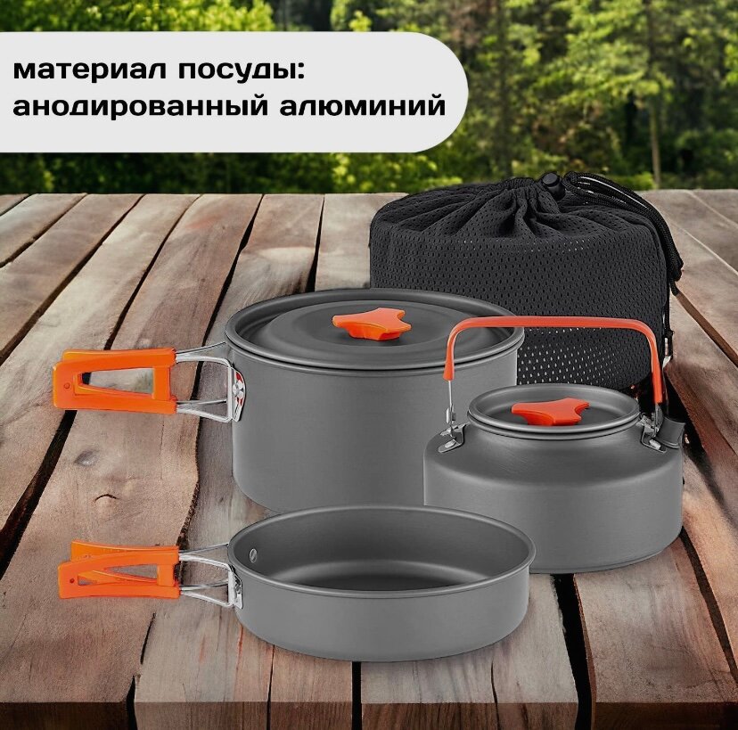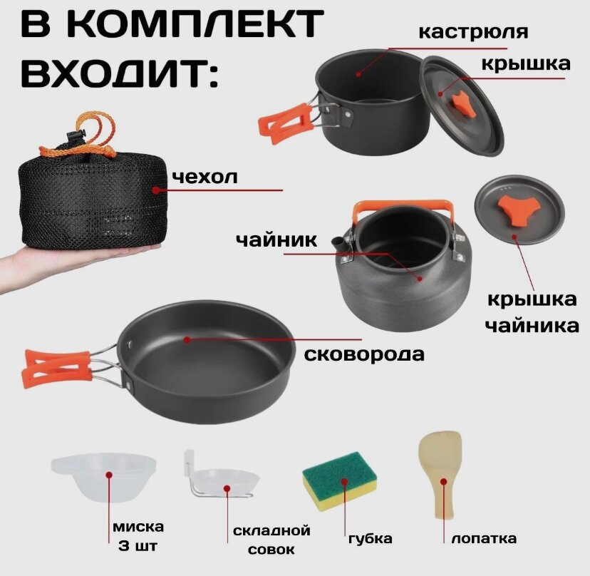 Набор туристической посуды, Походный набор посуды, 10 предметов, для кемпинга, похода, рыбалки, пикника, складной интересное: