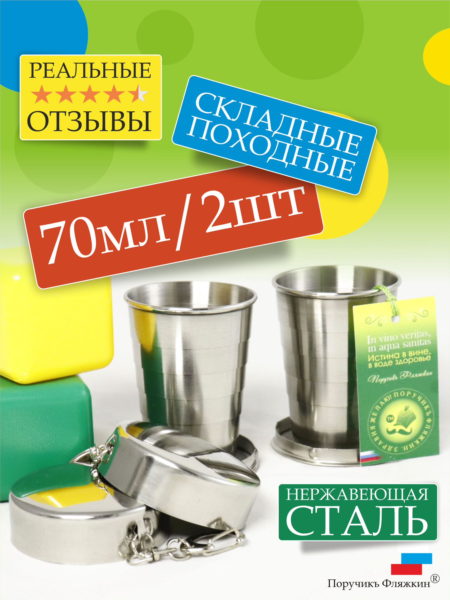 Комплект "2 х 70": два складных металлических стакана по 70 мл интересное: