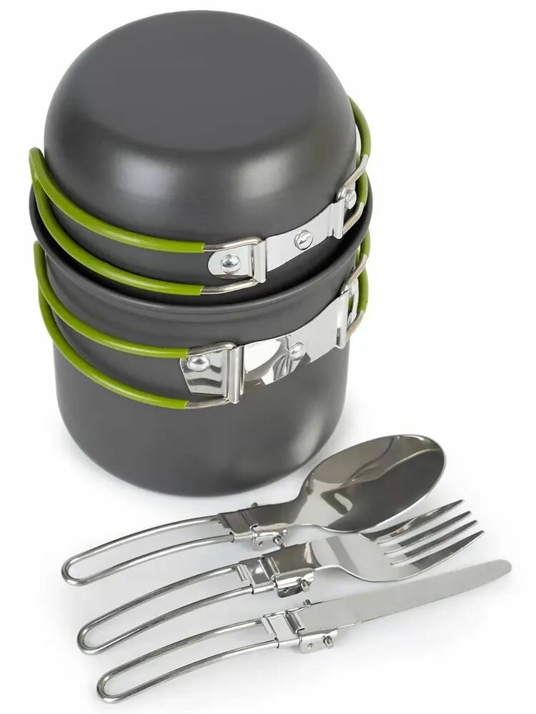 Купить Набор туристической посуды для 1-2 человек с приборами и чехлом комплект для похода, кемпинга и пикника (Зеленый)