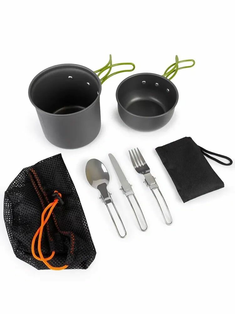 Набор туристической посуды для 1-2 человек с приборами и чехлом комплект для похода, кемпинга и пикника (Зеленый) интересное: