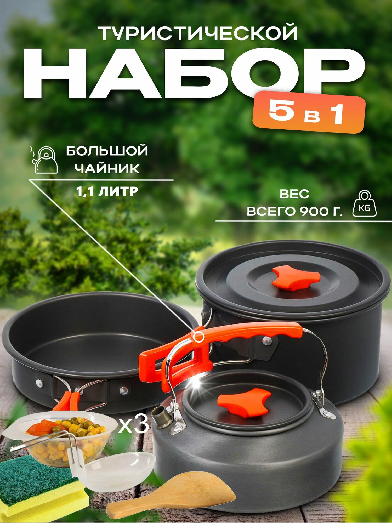 Купить Набор туристической посуды, для походов, для пикника, посуда для костра