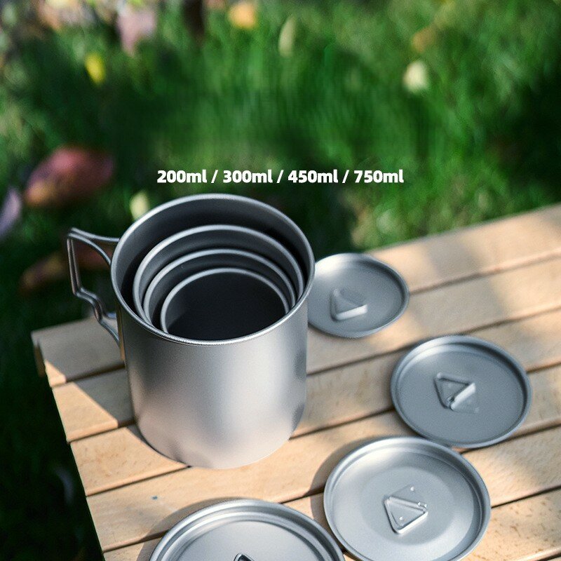 Купить Походная кружка титановая с крышкой 450мл, туристический стакан