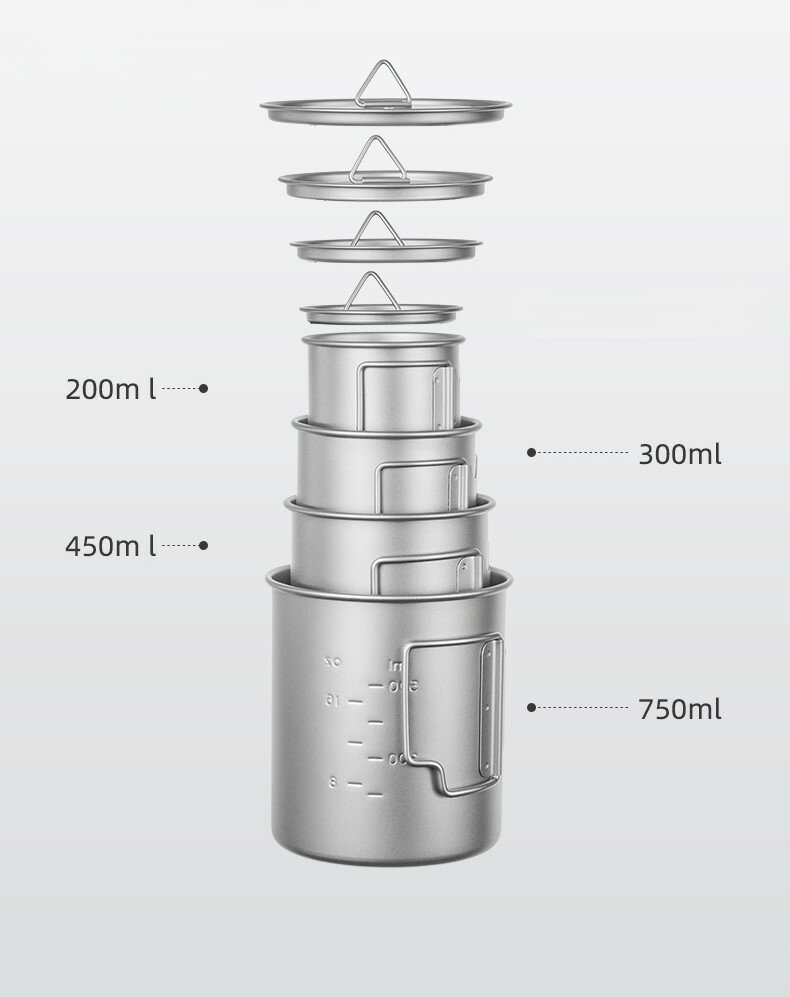 Походная кружка титановая с крышкой 750мл, туристический стакан