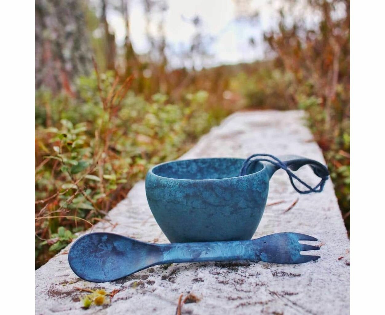 Купить Финский набор посуды Kupilka 37 Spork Set (чашка-кукса 370 мл, ловилка 205 мм), цвет: Blueberry