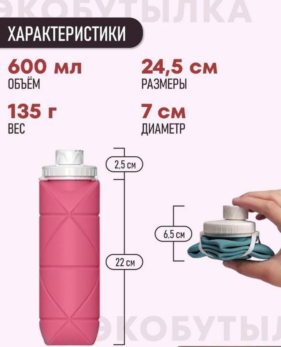 Бутылка для воды спортивная компактная, складная, 600 мл, розовый интересное: