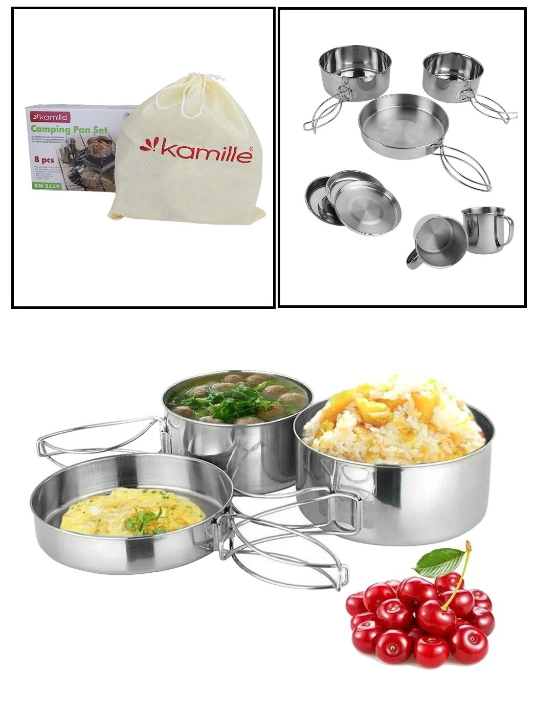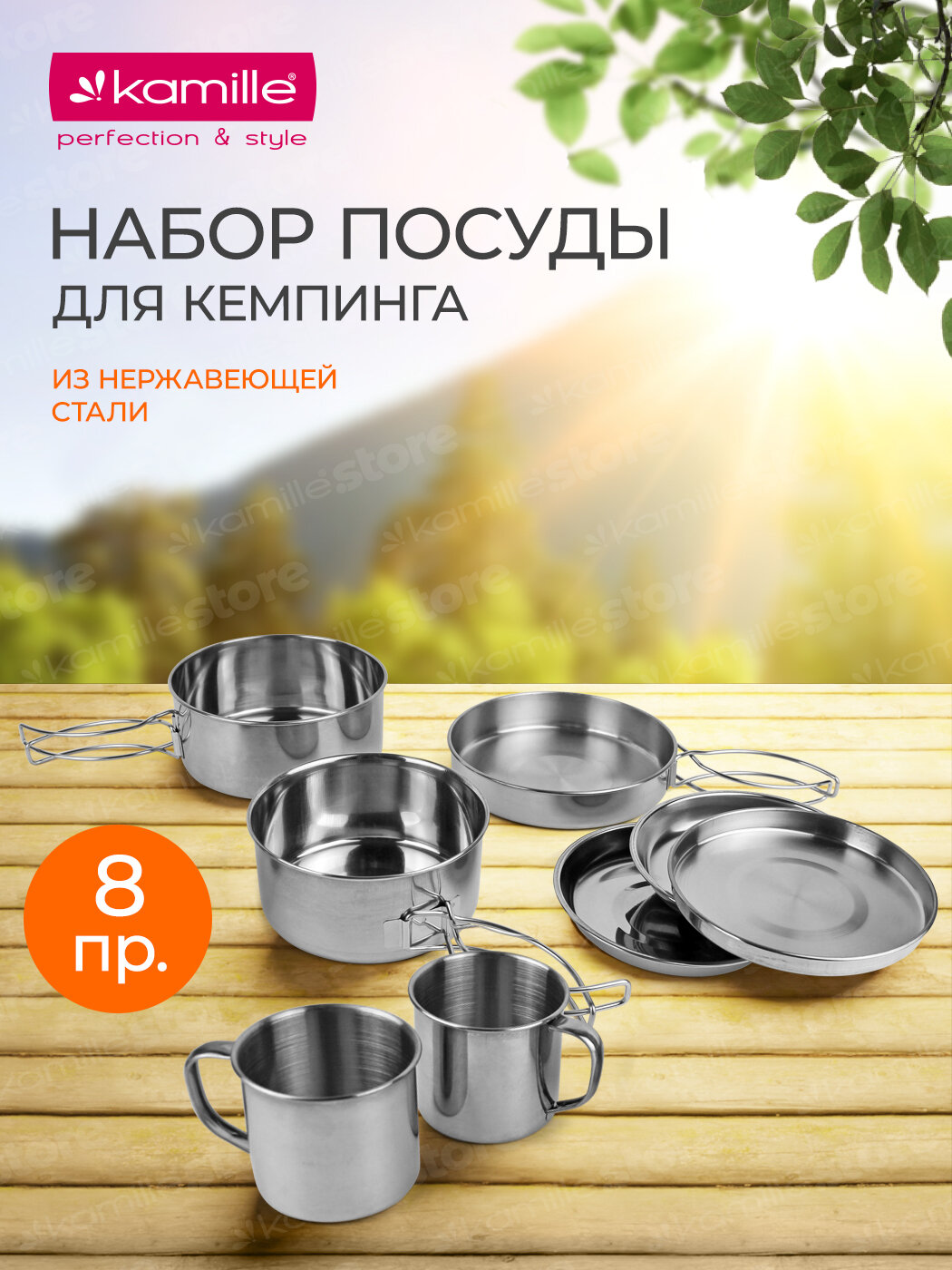 Набор туристической посуды 8 предметов Kamille KM 2119 из нержавеющей стали (2119 / серебристый) интересное: