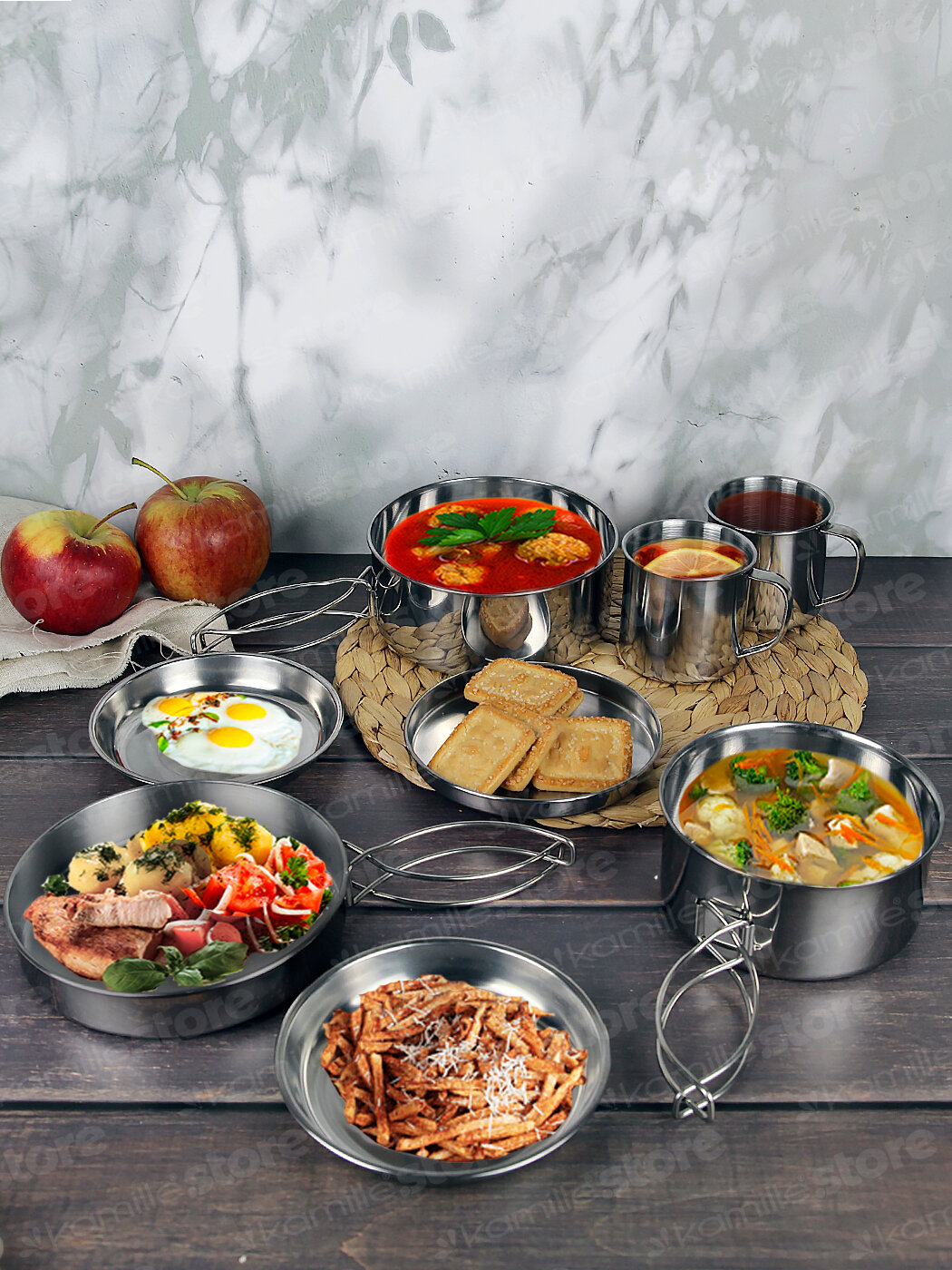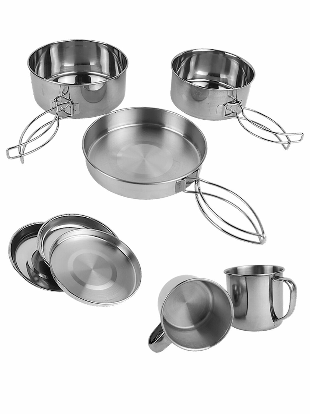Купить Набор туристической посуды 8 предметов Kamille KM 2119 из нержавеющей стали (2119 / серебристый)