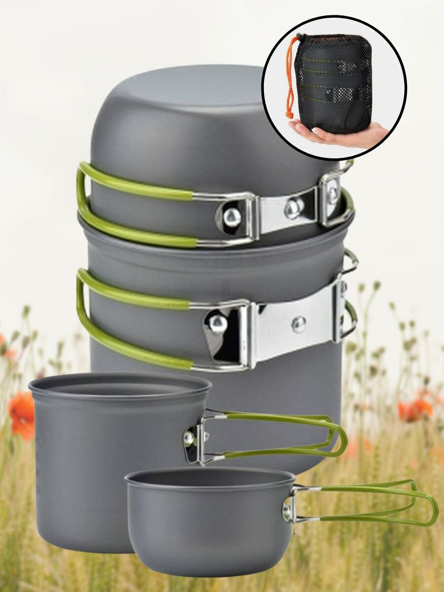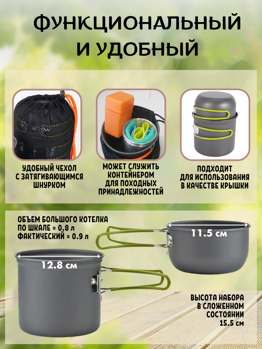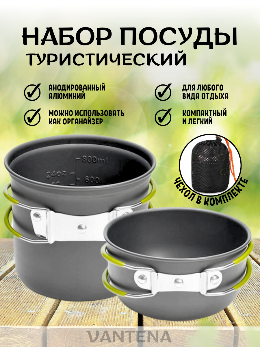 Набор походных котелков Vantena, алюминий, с чехлом, 0,8 и 0,35 л, складной интересное: