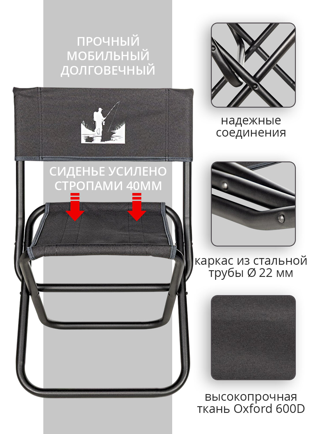 Стул туристический складной со cпинкой FB-015, размер 66х34х45, чёрный интересное:
