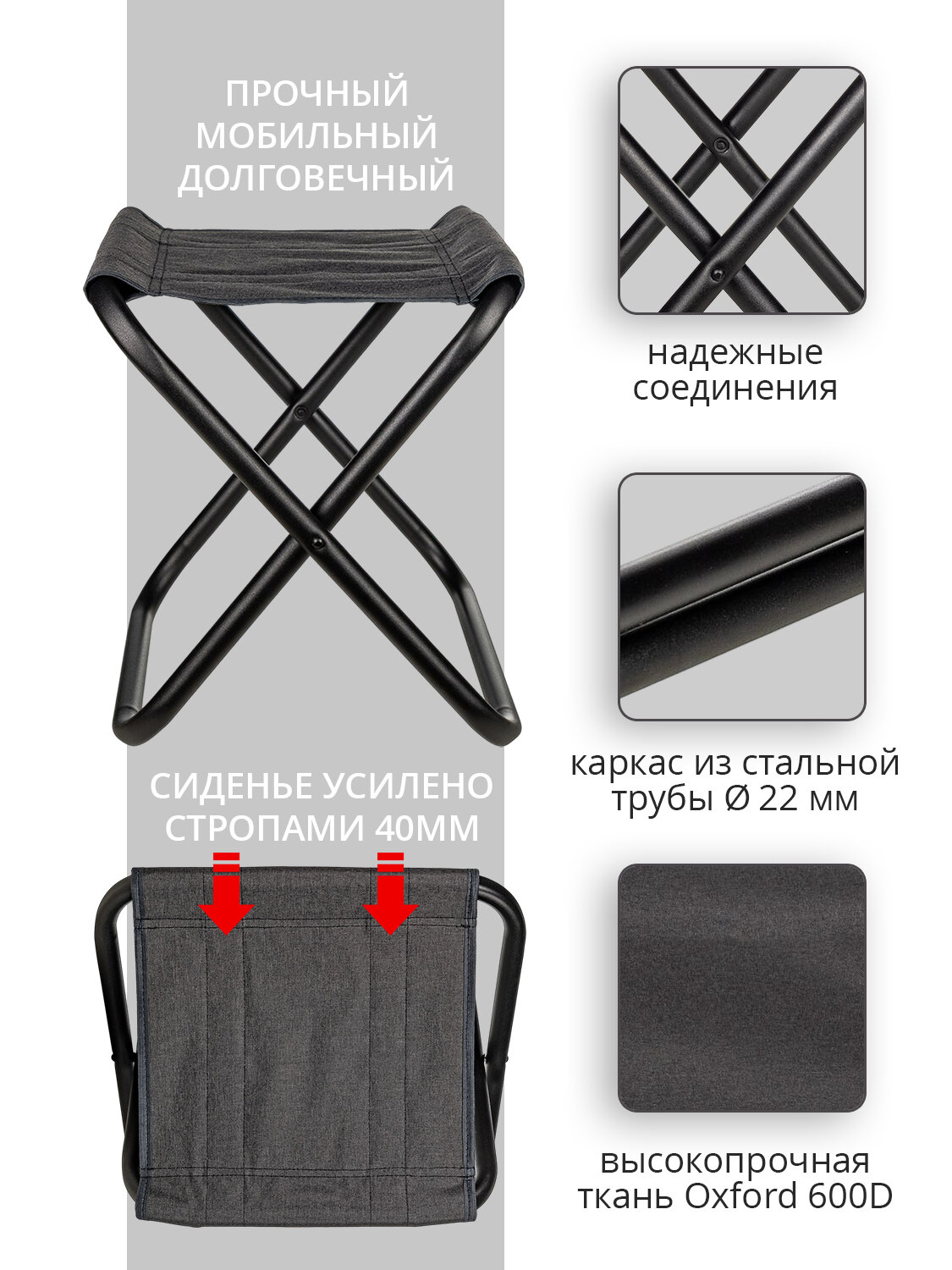 Стул туристический FB-014, складной, черный, полиэстер, 40 х 34 х 38 см интересное: