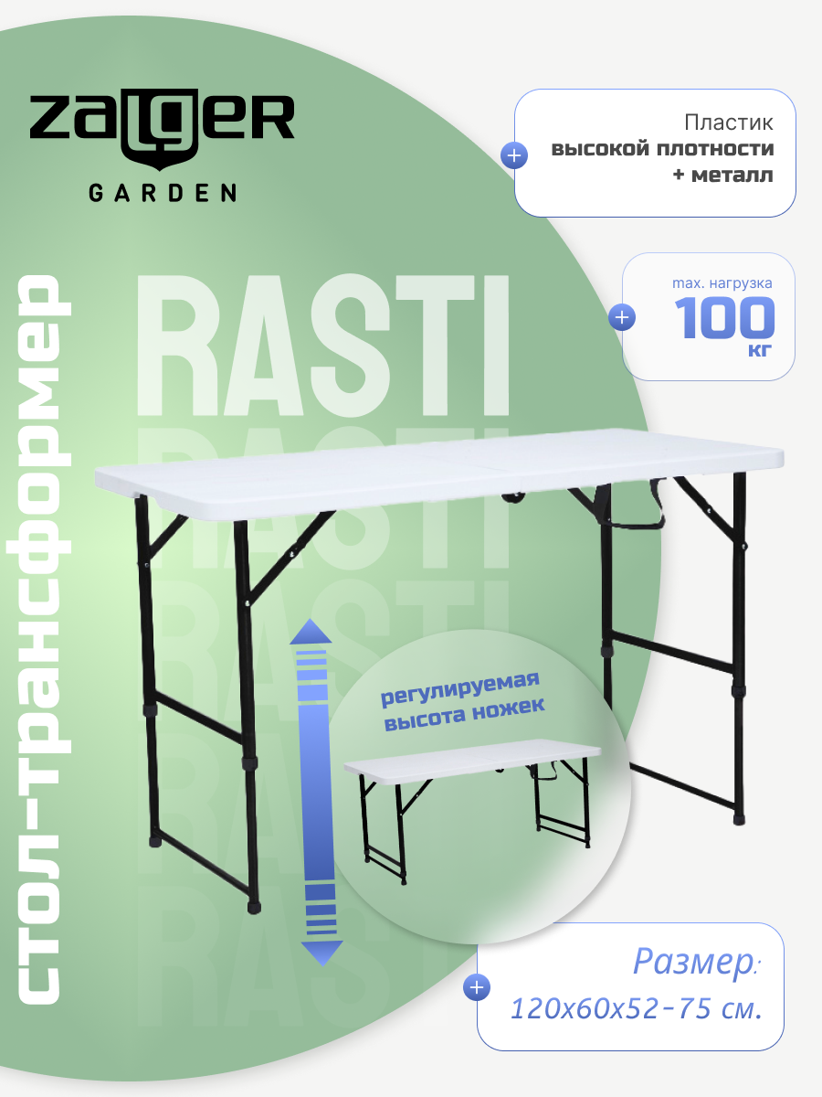 Стол-трансформер Zalger Rasti, складной, белый, максимальная нагрузка 100 кг, 120х60х75 см интересное: