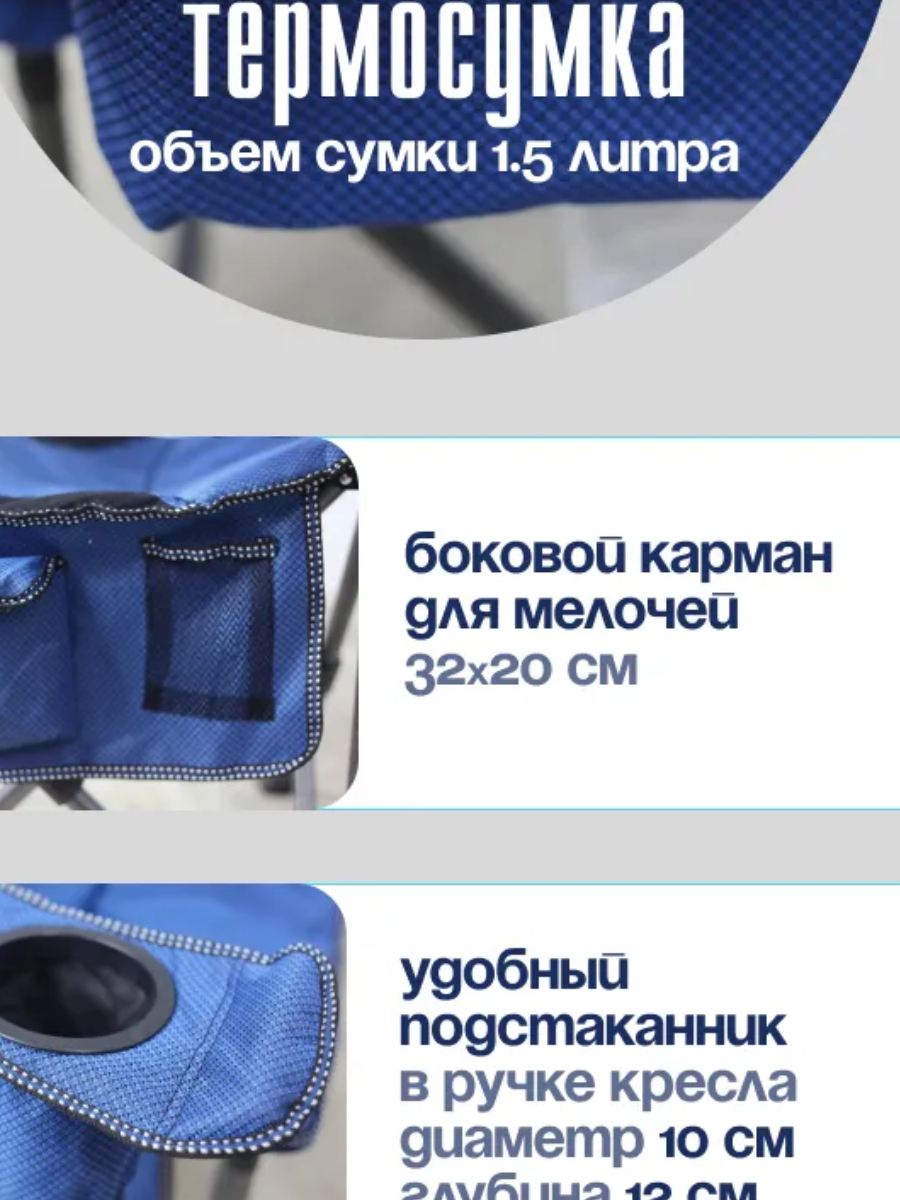 Кресло складное, кемпинговое, подстаканником и с термо-сумкой 60*60*108см 2 штуки интересное: