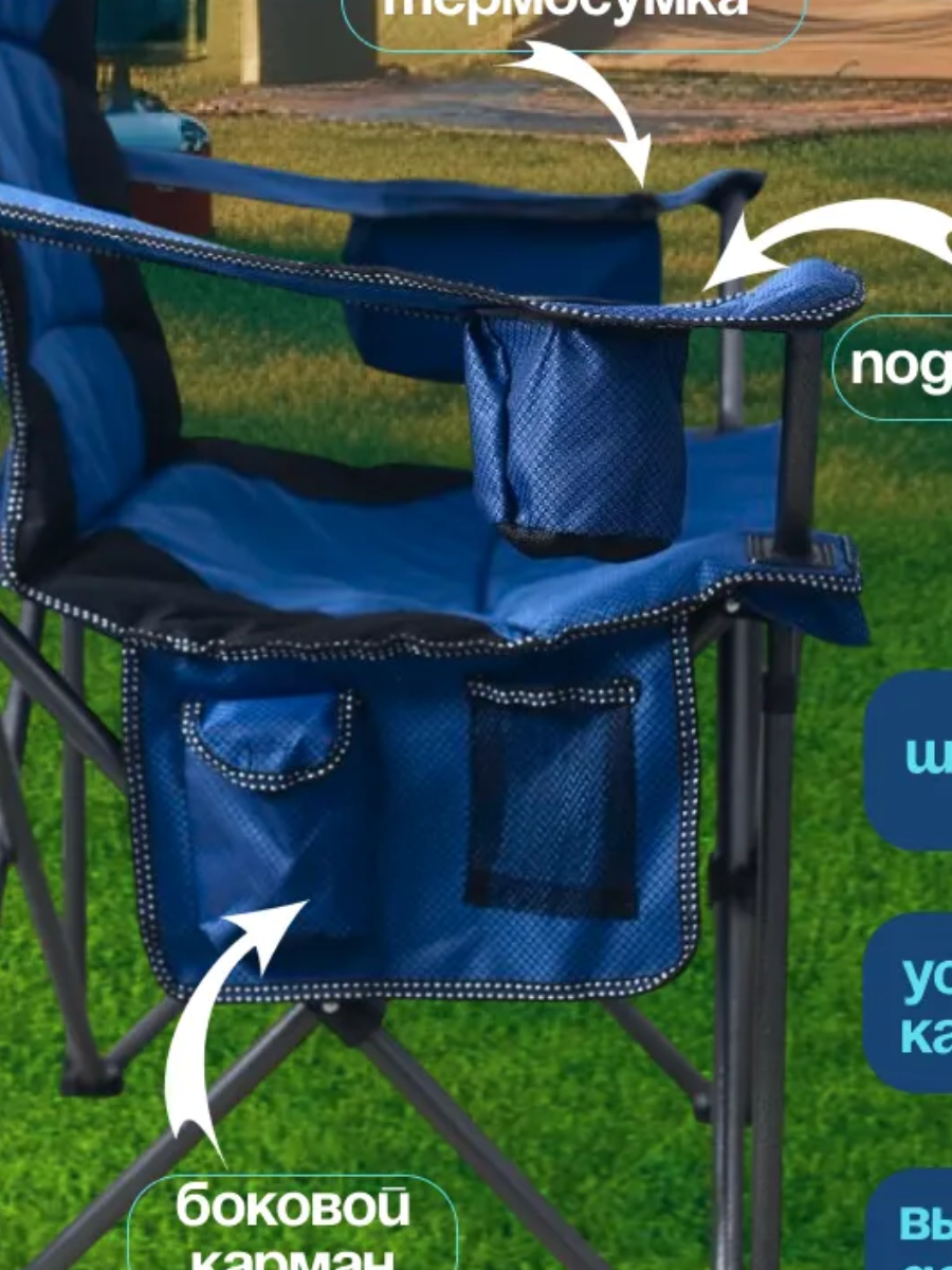 Ниже Вы можете прочитать отзывы на Кресло складное, кемпинговое, подстаканником и с термо-сумкой 60*60*108см 2 штуки, ознакомится с подробными характеристиками, посмотреть интересные обзоры и фотографии на Кресло складное, кемпинговое, подстаканником и с термо-сумкой 60*60*108см 2 штуки.