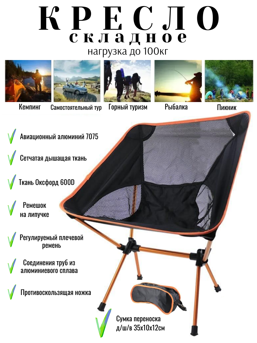 Кресло туристическое "Походное" Стул-кресло складное туристическое, цвет оранжевый интересное: