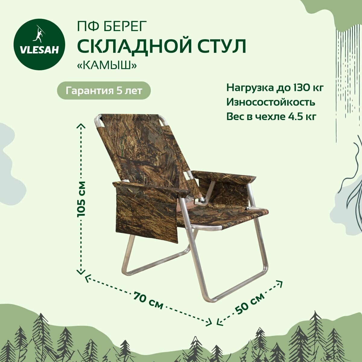 Стул складной Берег туристический, походный, Камыш, до 130 кг, подлокотники, карманы, в сумке-чехле интересное: