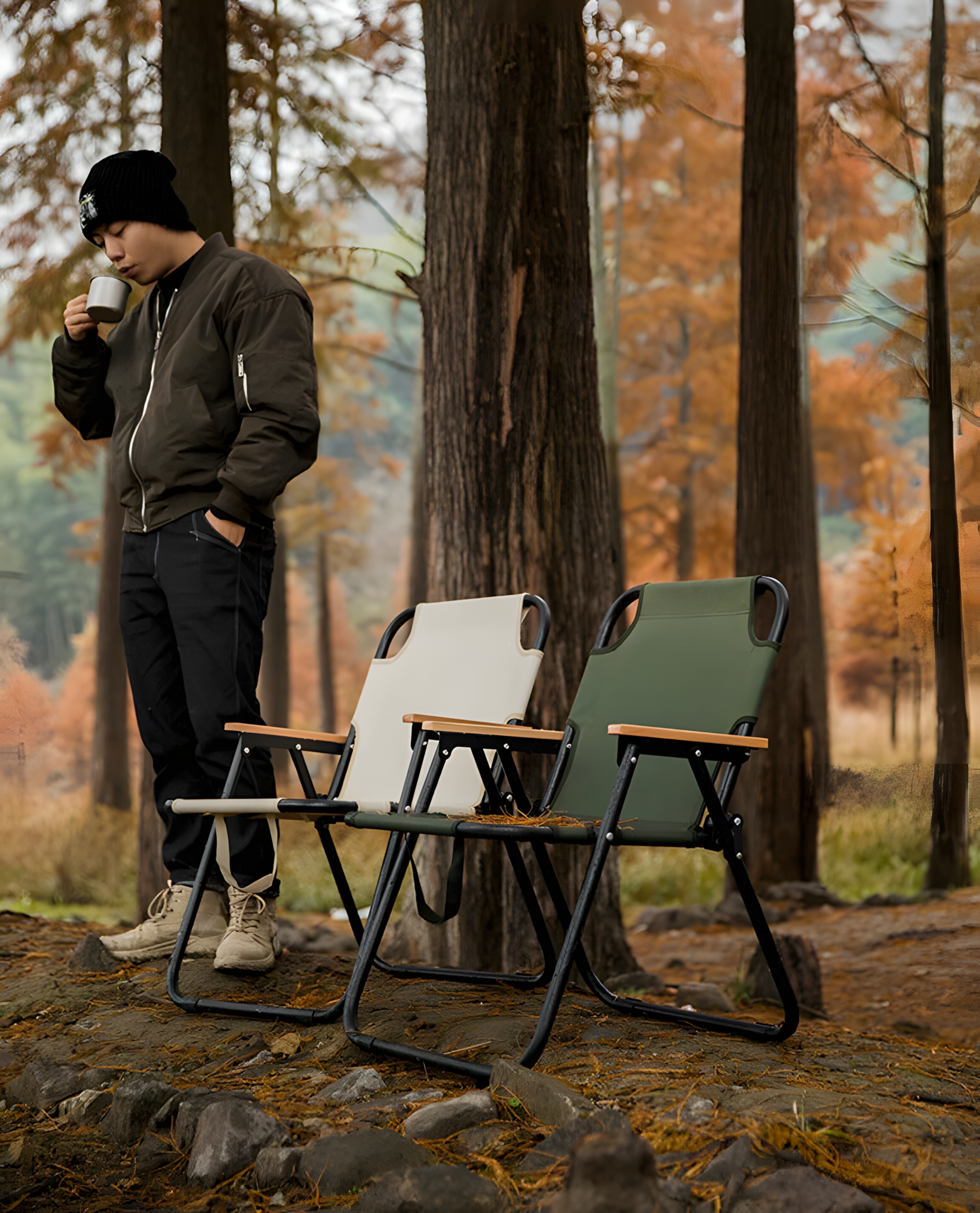 Складное кресло, металлический каркас, подлокотники, черный каркас, бежевый