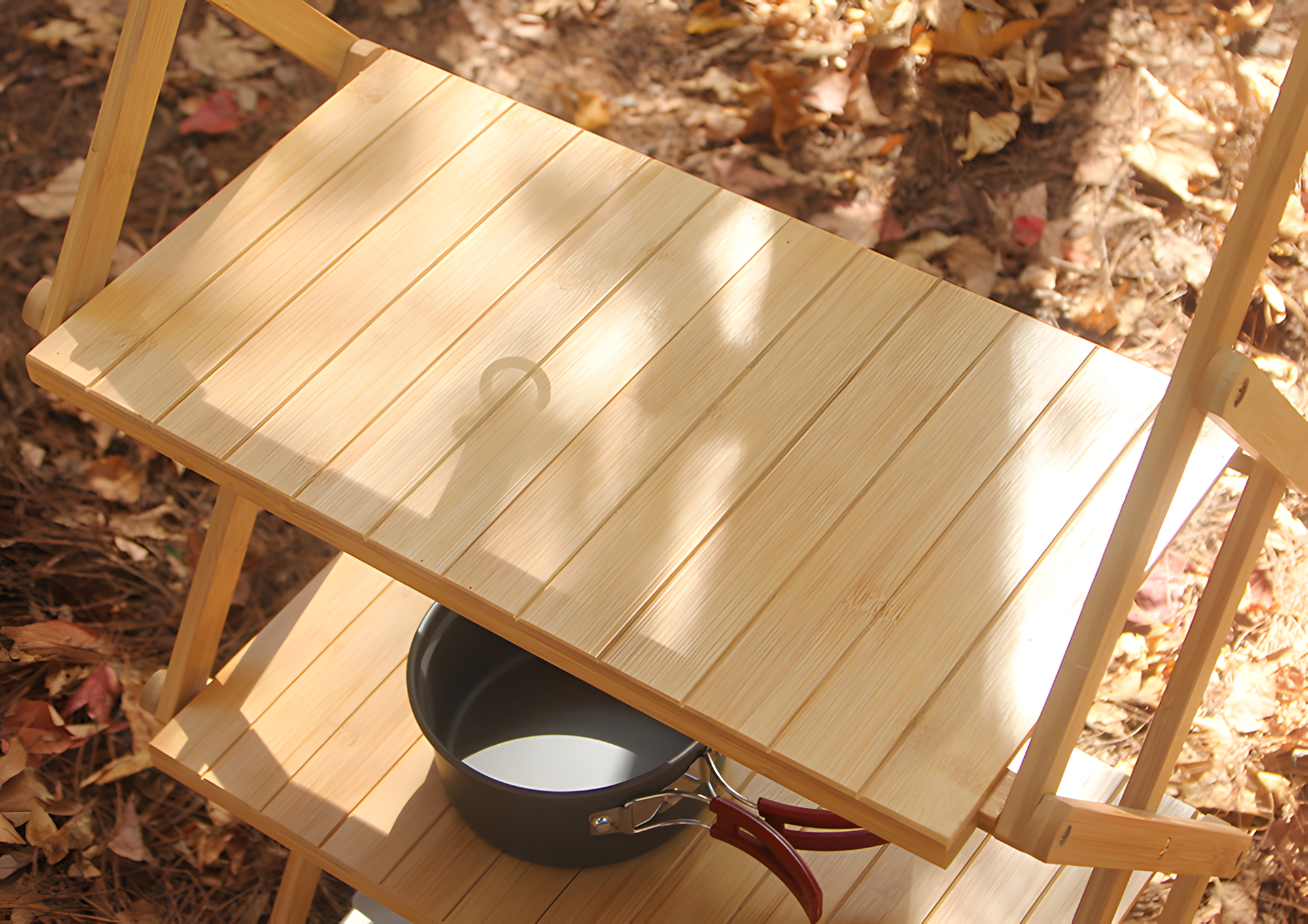 Складной туристический стеллаж из бамбука, 3 полки и перекладина, натуральный, 84х70 см