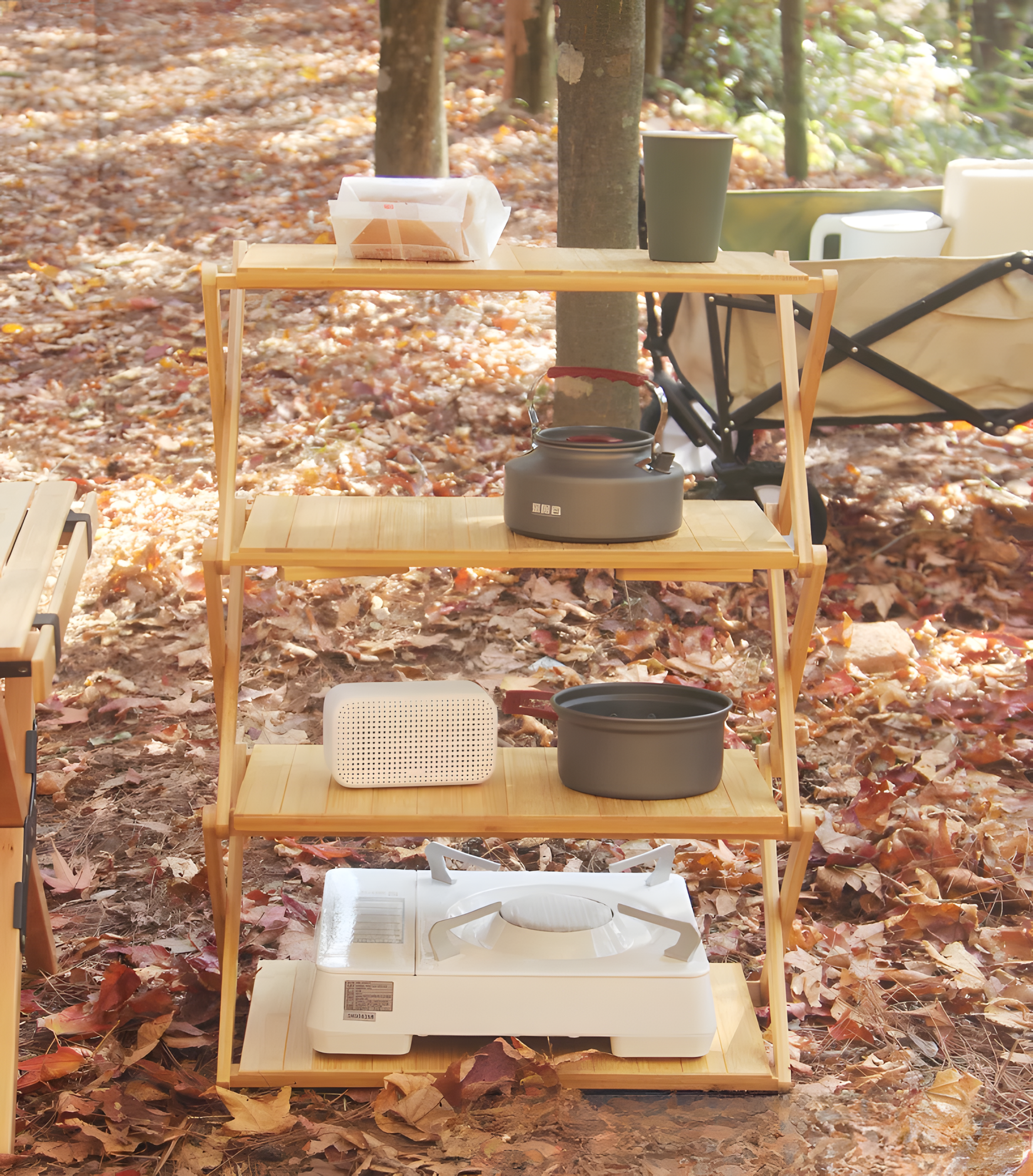 Складной туристический стеллаж из бамбука, 4 полки, натуральный, 68х70 см