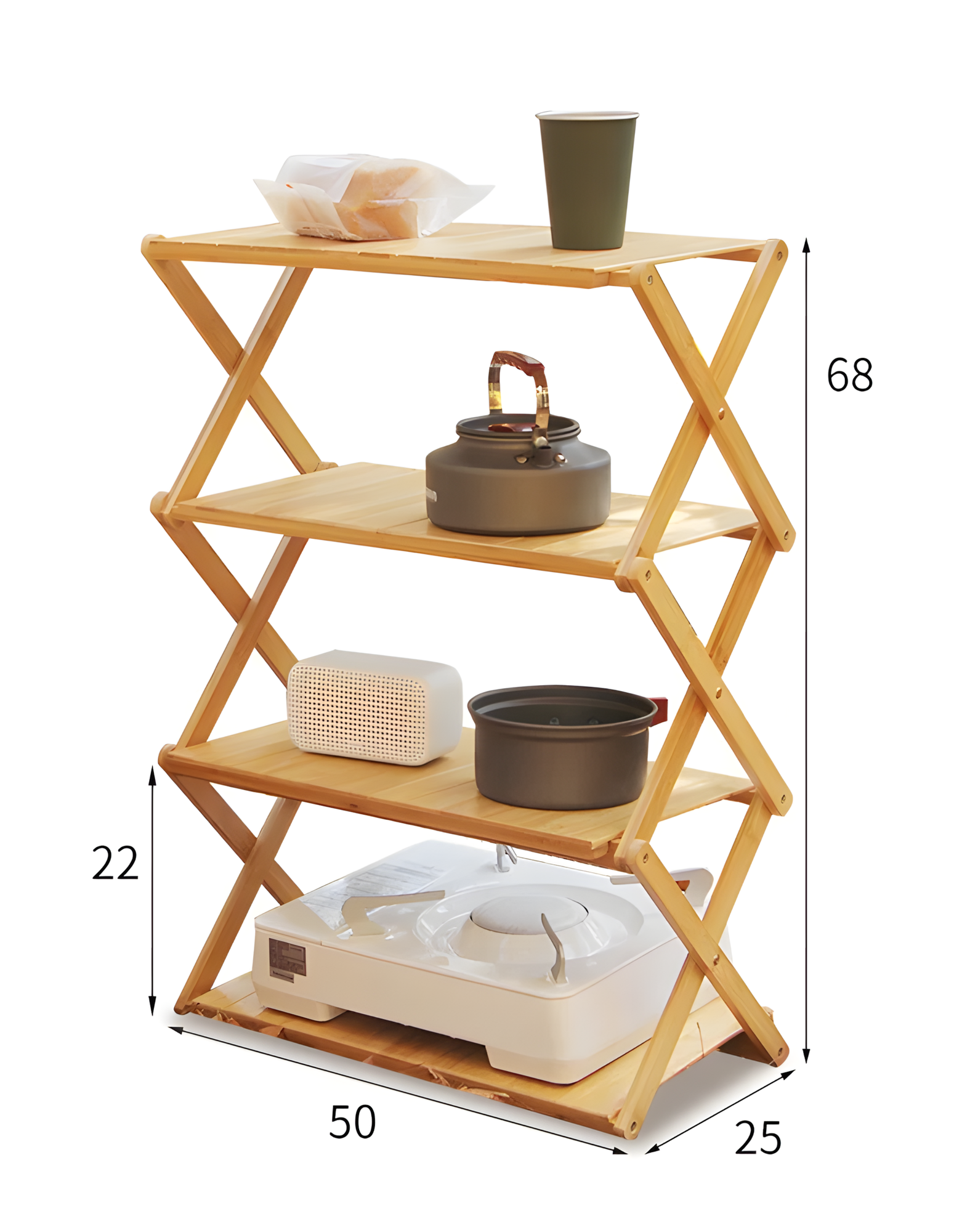 Купить Складной туристический стеллаж из бамбука, 4 полки, натуральный, 68х50 см