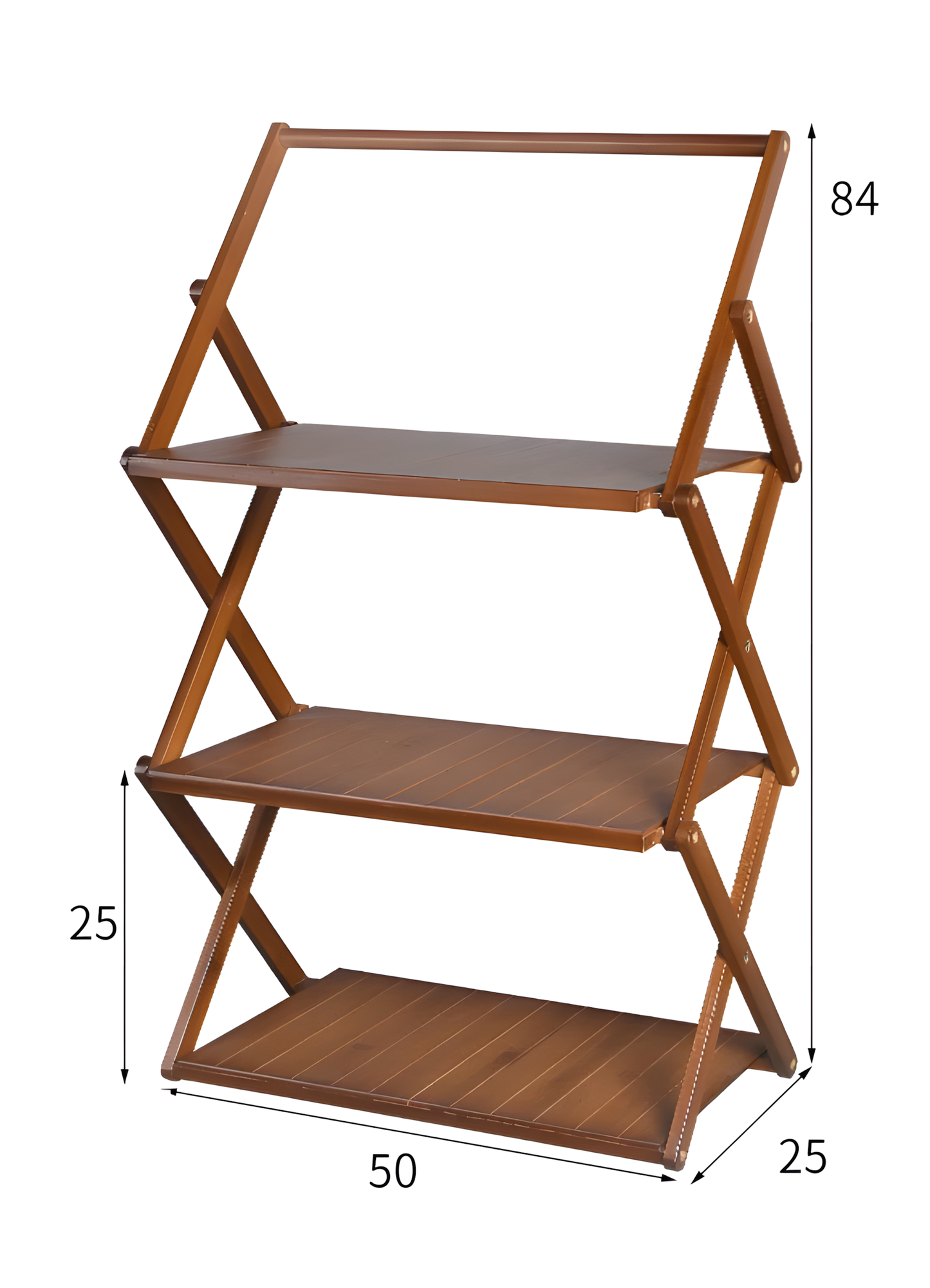Складной туристический стеллаж из бамбука, 3 полки и перекладина, ореховый, 84х70 см