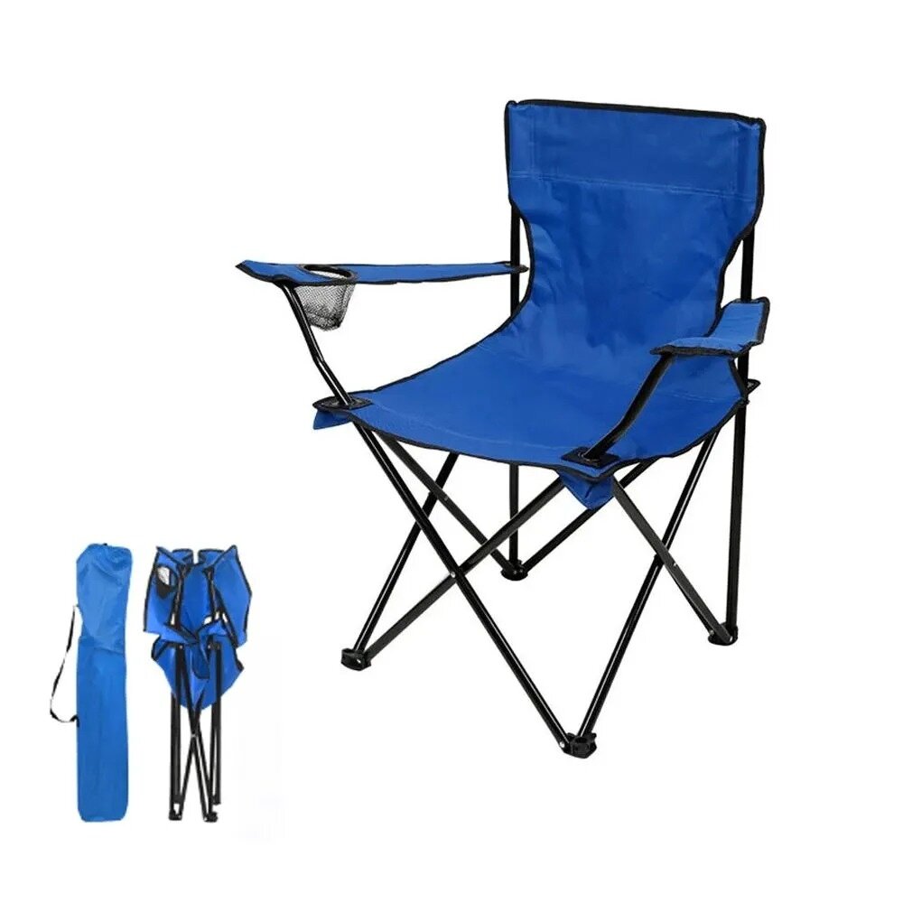 Стул складной туристический с подлокотниками и подстаканником, синий, кресло походное National Tree Company интересное: