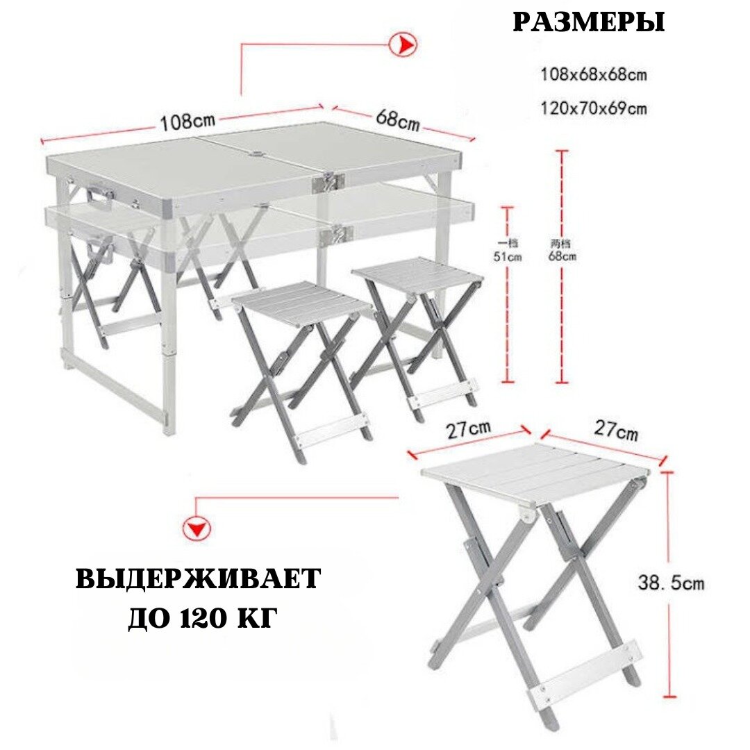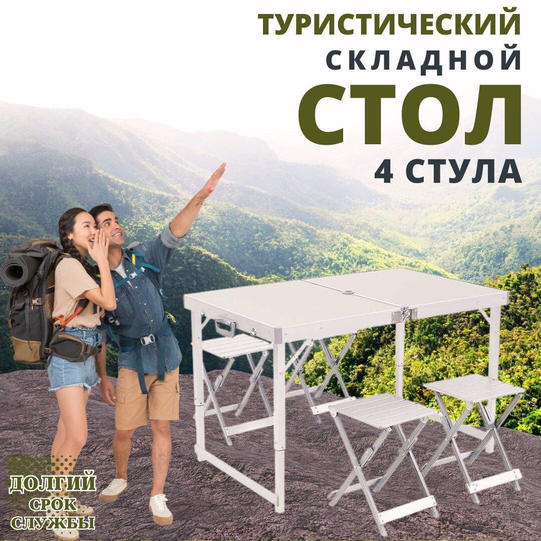 Купить Стол складной туристический / Сверхусиленный складной стол с 4 стульями / Мебель для кемпинга, охоты, рыбалки и отдыха