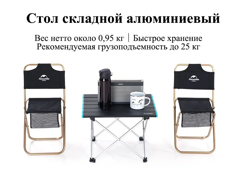Туристический стол Naturehike, FT8 NH19Z008-Z, черный/серый, до 25 кг интересное: