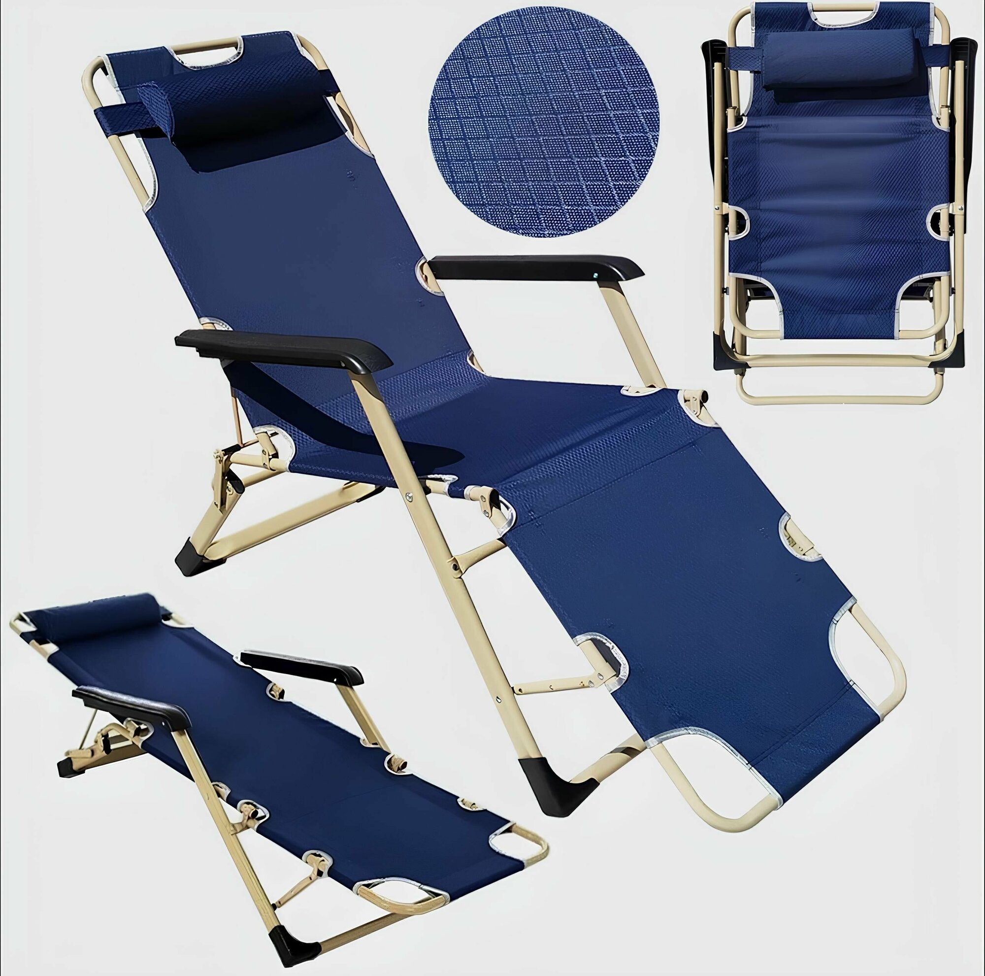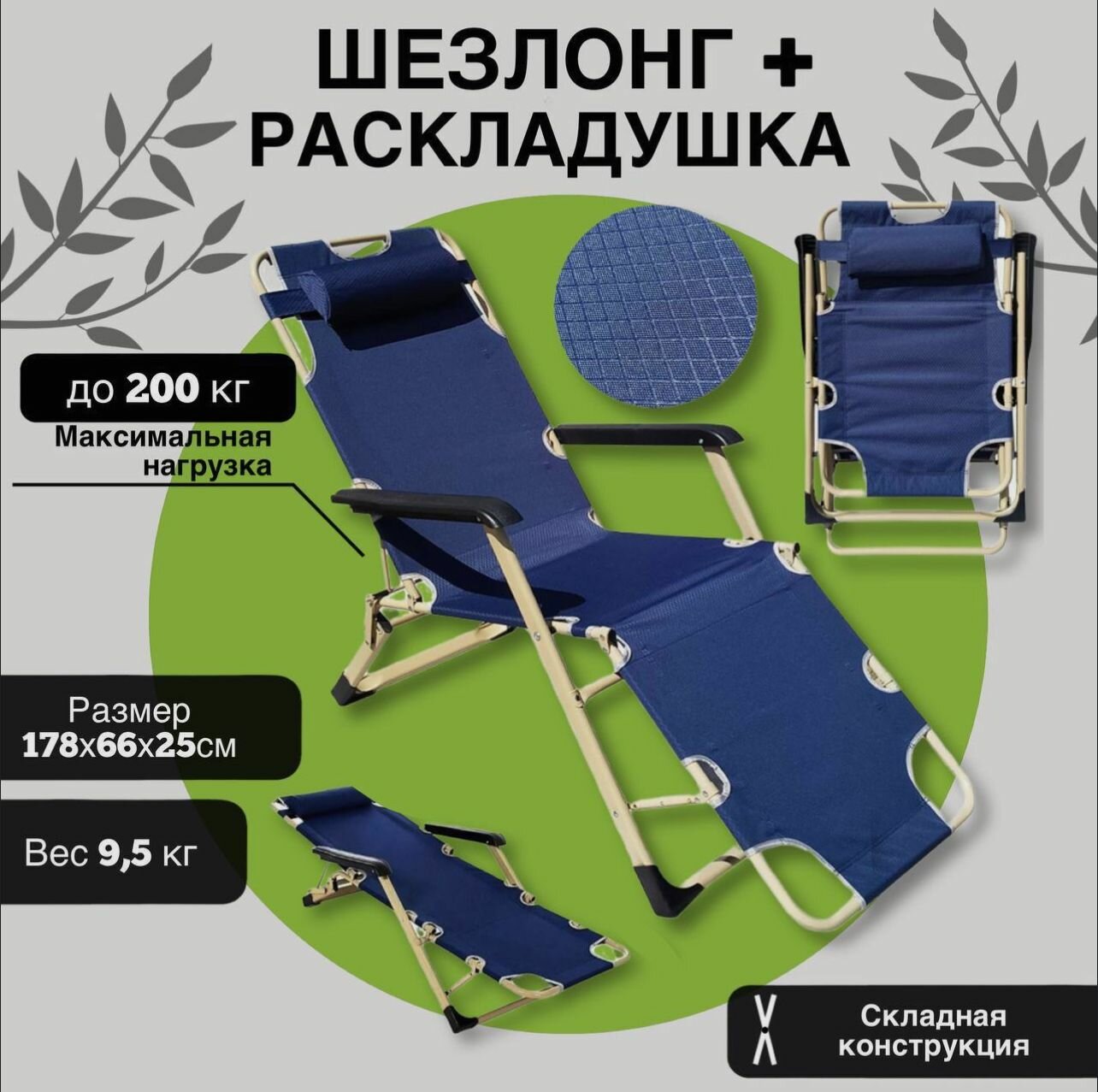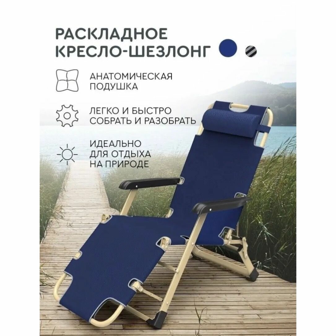 Кресло-шезлонг для дачи складной , усиленный / с подушкой / синий интересное: