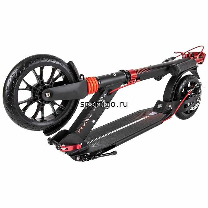 Купить Tech Team Самокат Tech Team City Scooter Disk Brake 2022 с амортизаторами с колёсами 200 мм и ручным дисковым тормозом чёрно-красный