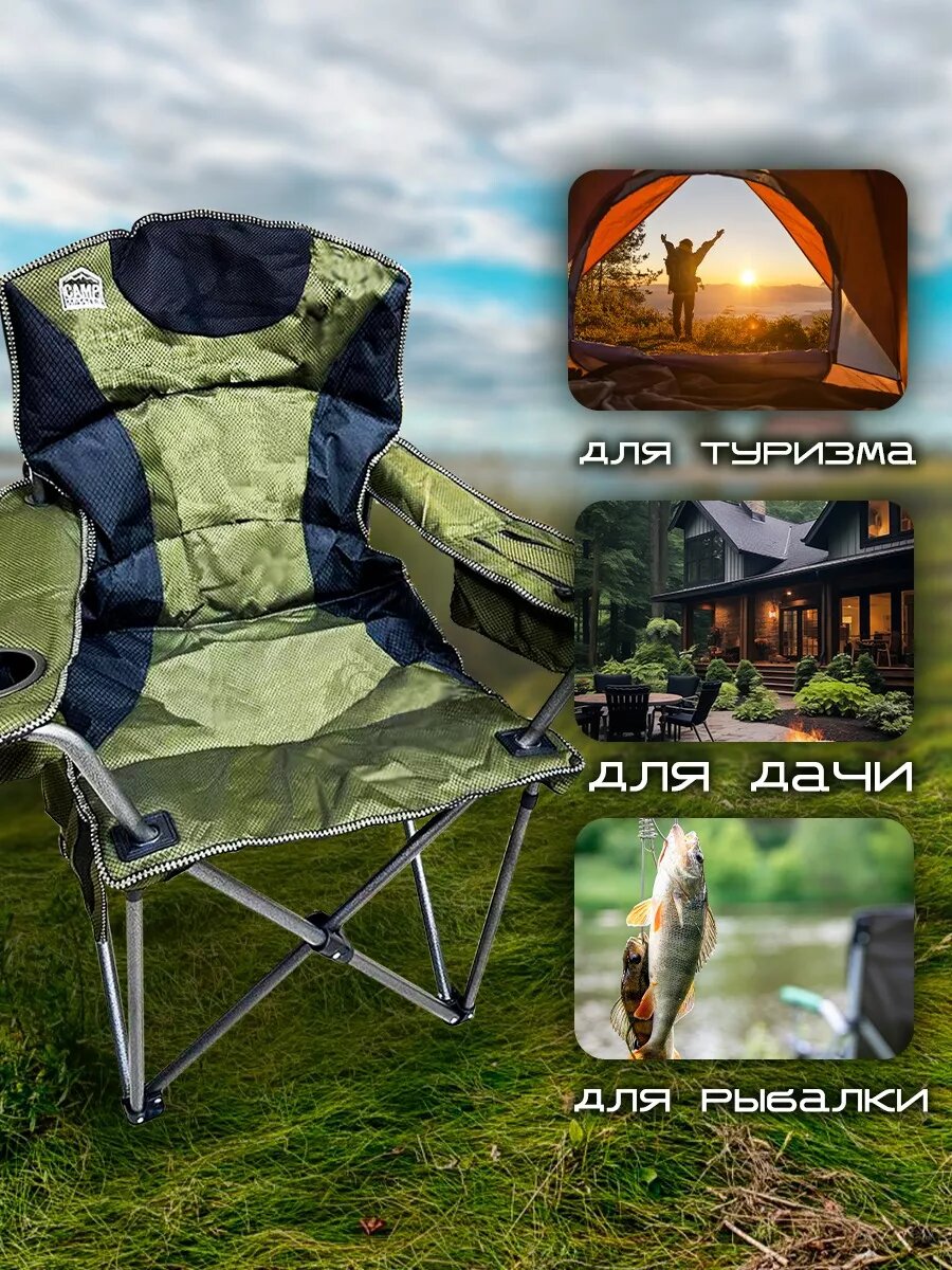 Кресло туристическое Бобёр, складное, для рыбалки, охоты, сада и дачи, зеленый/черный