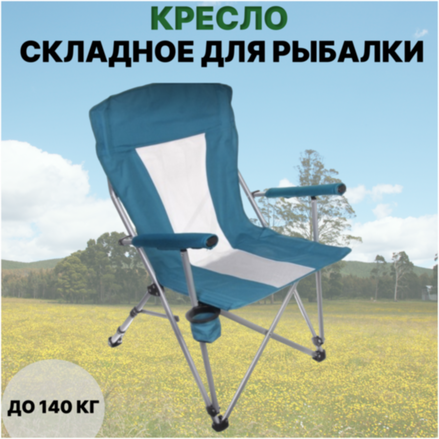 Кресло складное туристическое TERBO с подстаканником , вес до 100 кг, цвет милитари камуфляж
