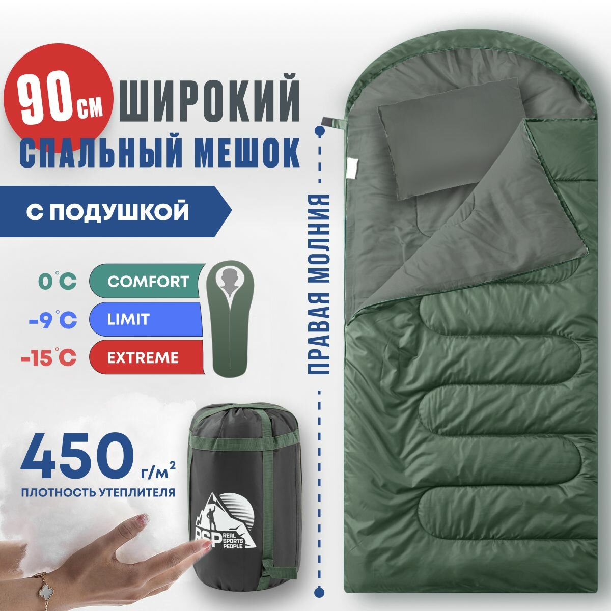 Купить Спальный мешок RSP Sleep 450 BIG (225*90 см, молния справа )