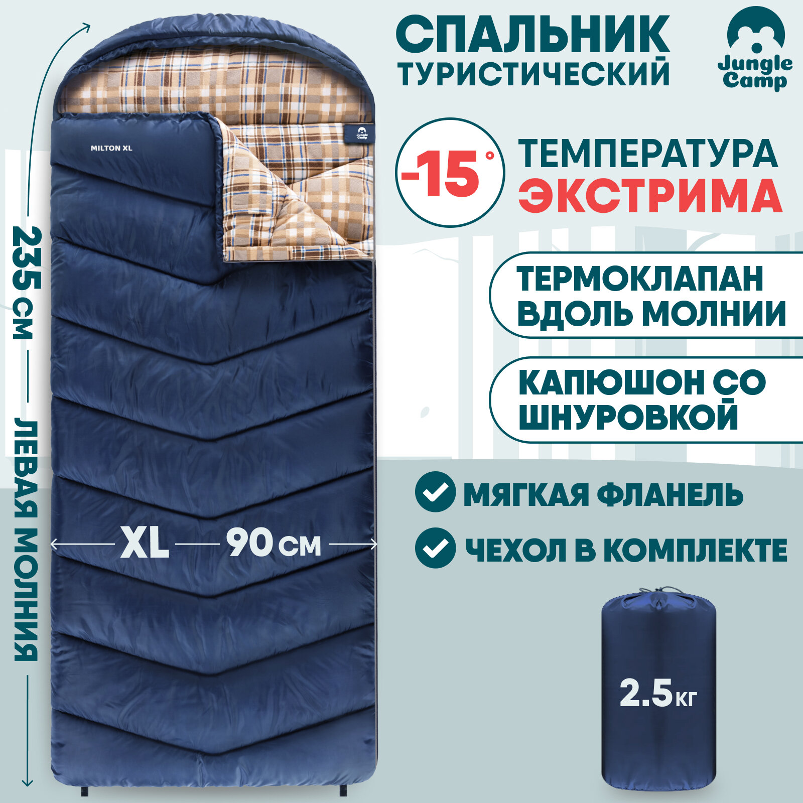 Спальный мешок Jungle Camp Milton XL, широкий, с фланелью, левая молния, цвет: синий интересное: