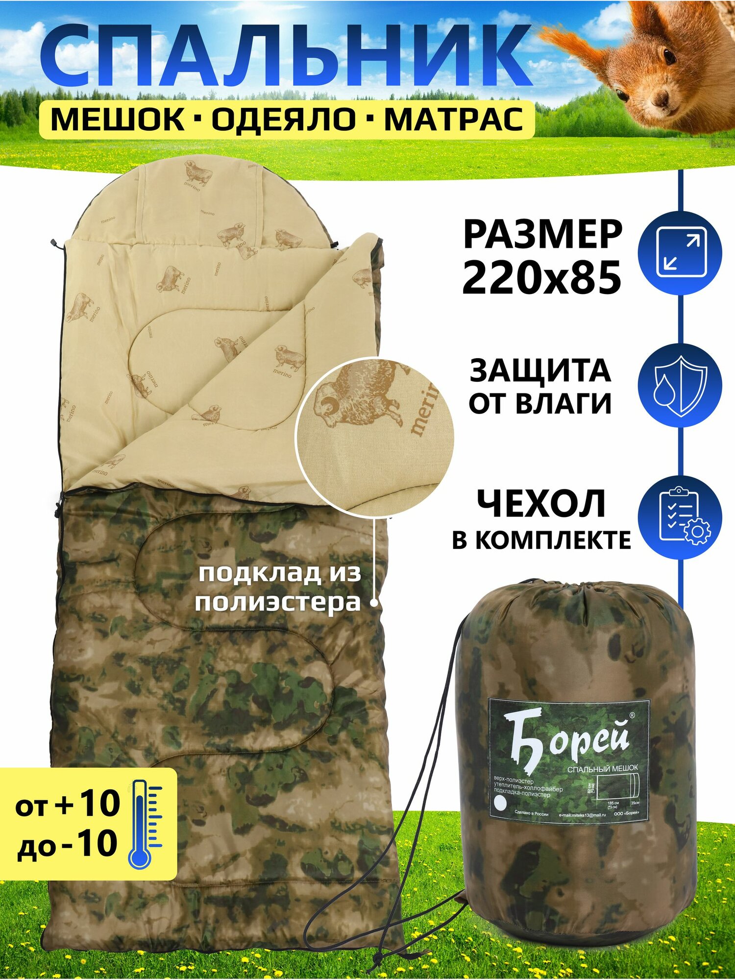 Спальный мешок туристический для похода и отдыха Борей до -10С интересное: