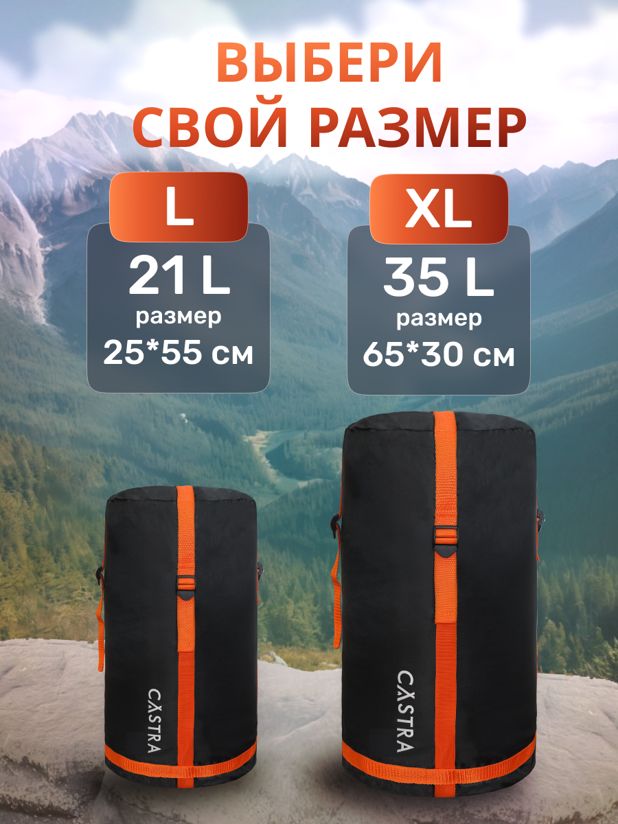 Компрессионный мешок Castra XL, для спальника, водонепроницаемый, 65x30 см интересное: