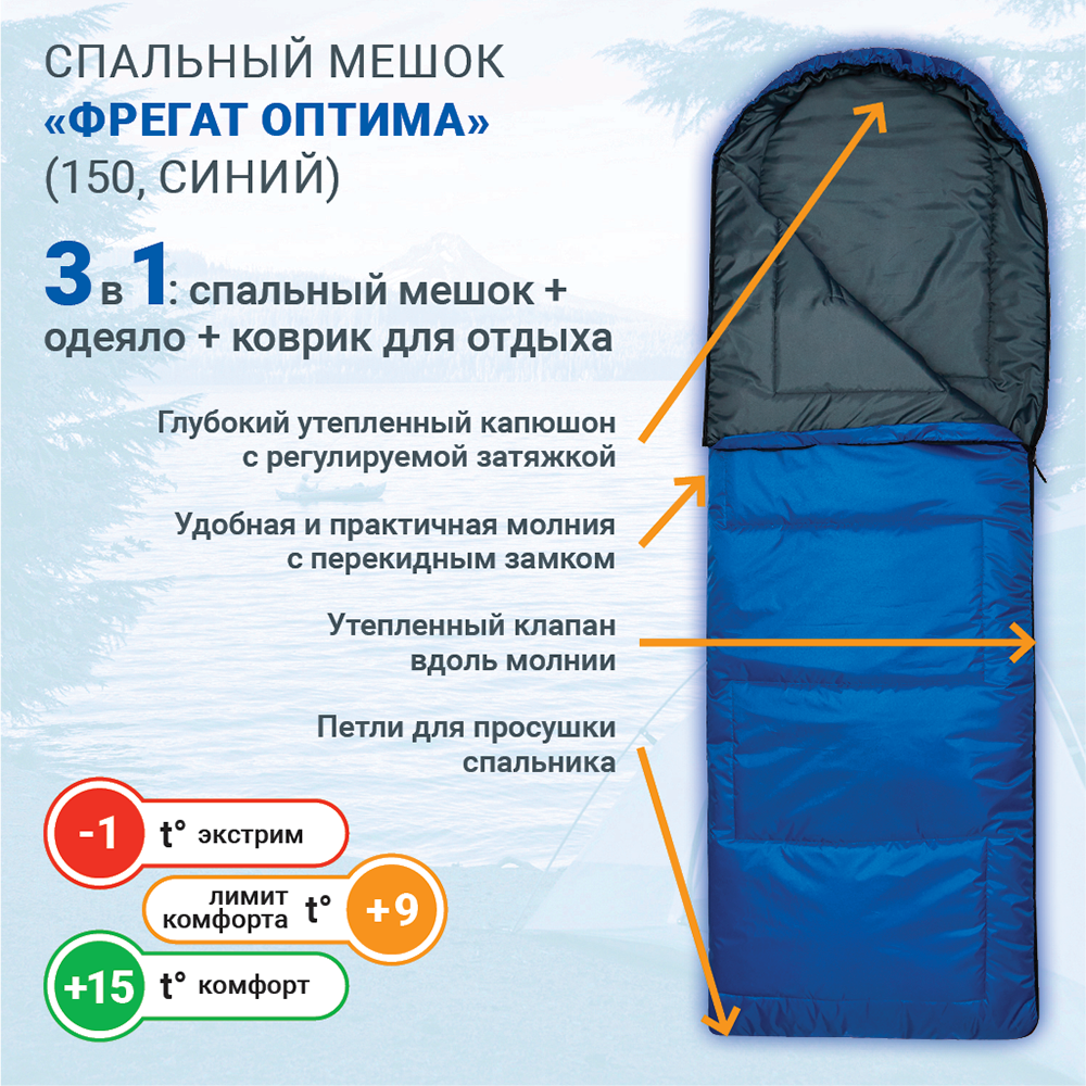 Спальный мешок Фрегат Оптима (150) туристический армейский синий интересное: