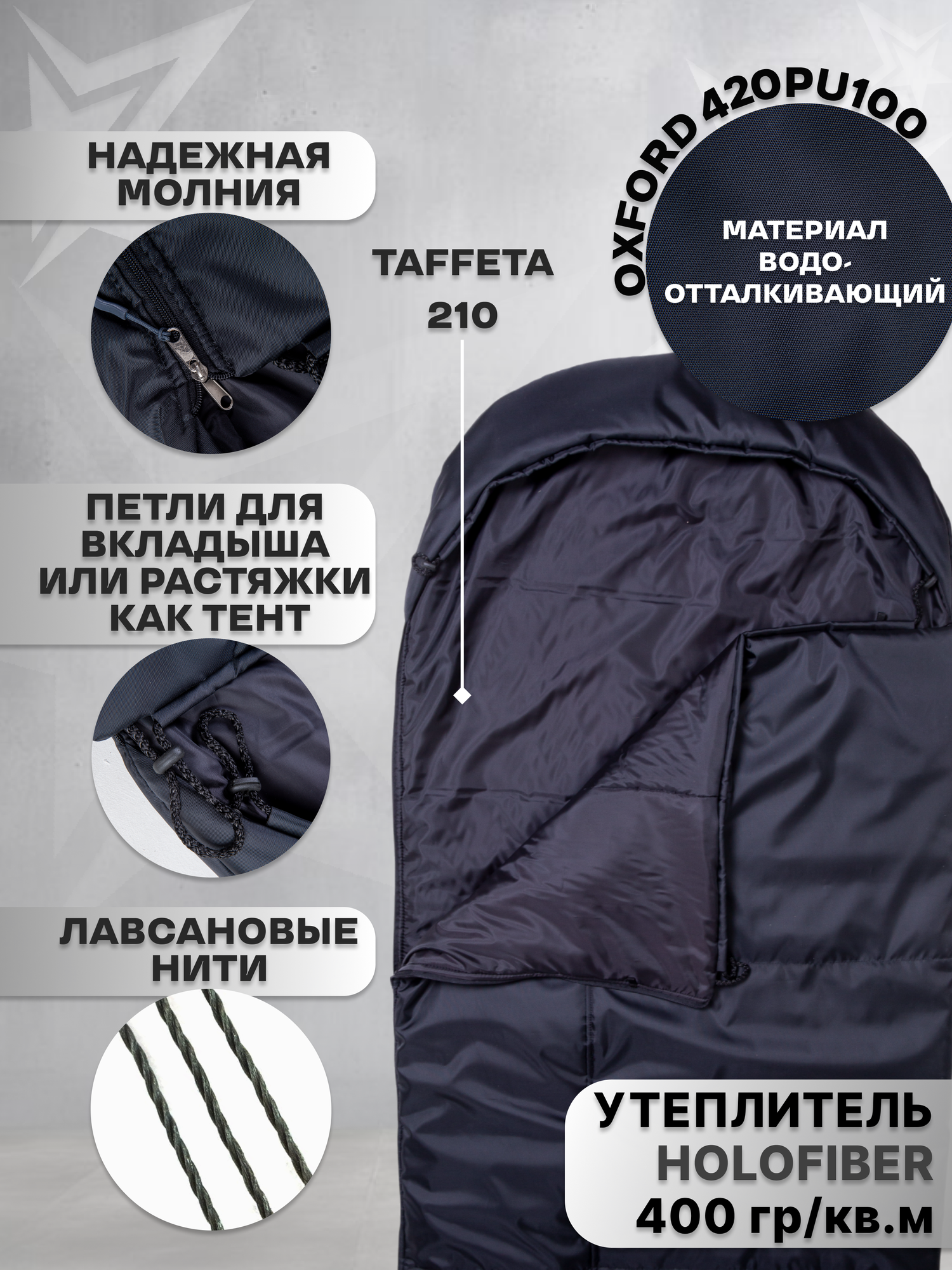 Спальный мешок туристический зимний армейский военный "Черный" интересное:
