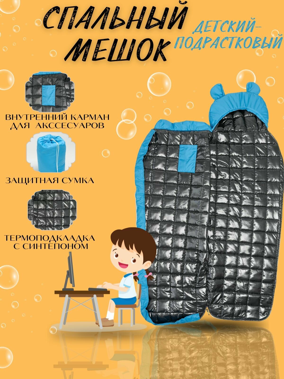 Спальный мешок Child_Blue -30C 175*65 см, спальник с подголовником и компрессионным чехлом интересное: