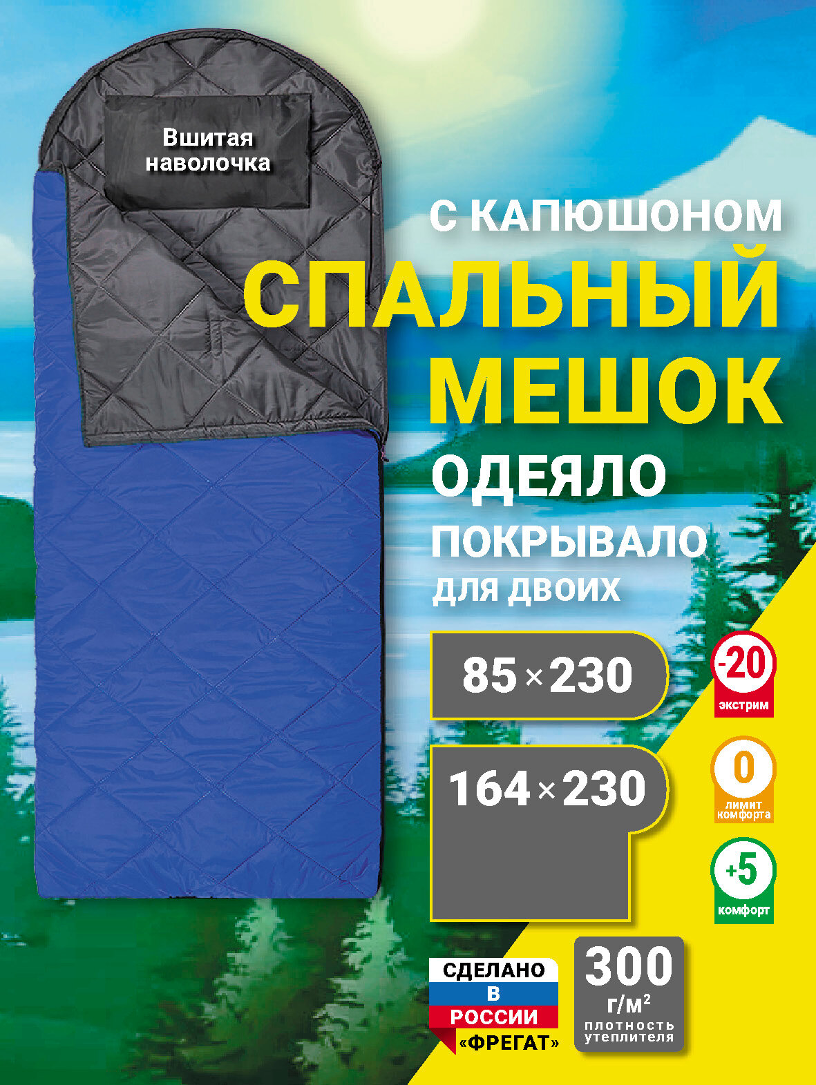 СохранитьСпальный мешок-одеяло с ультразвуковой стежкой и подголовником Фрегат (300). синий, Спальник туристический 85 х 230 см интересное: