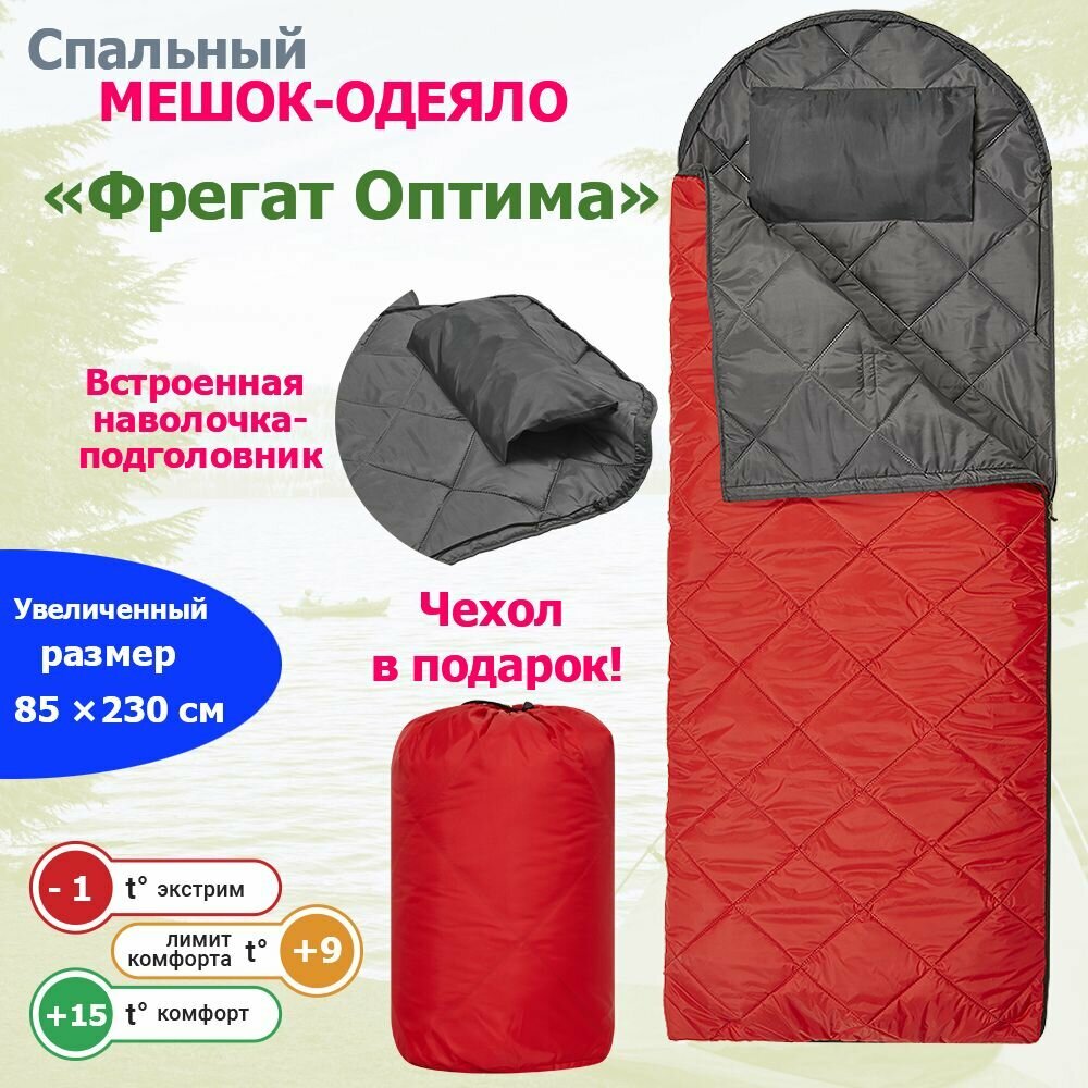 Спальный мешок-одеяло с ультразвуковой стежкой и подголовником Фрегат (300), красный, Спальник туристический 85 х 230 см