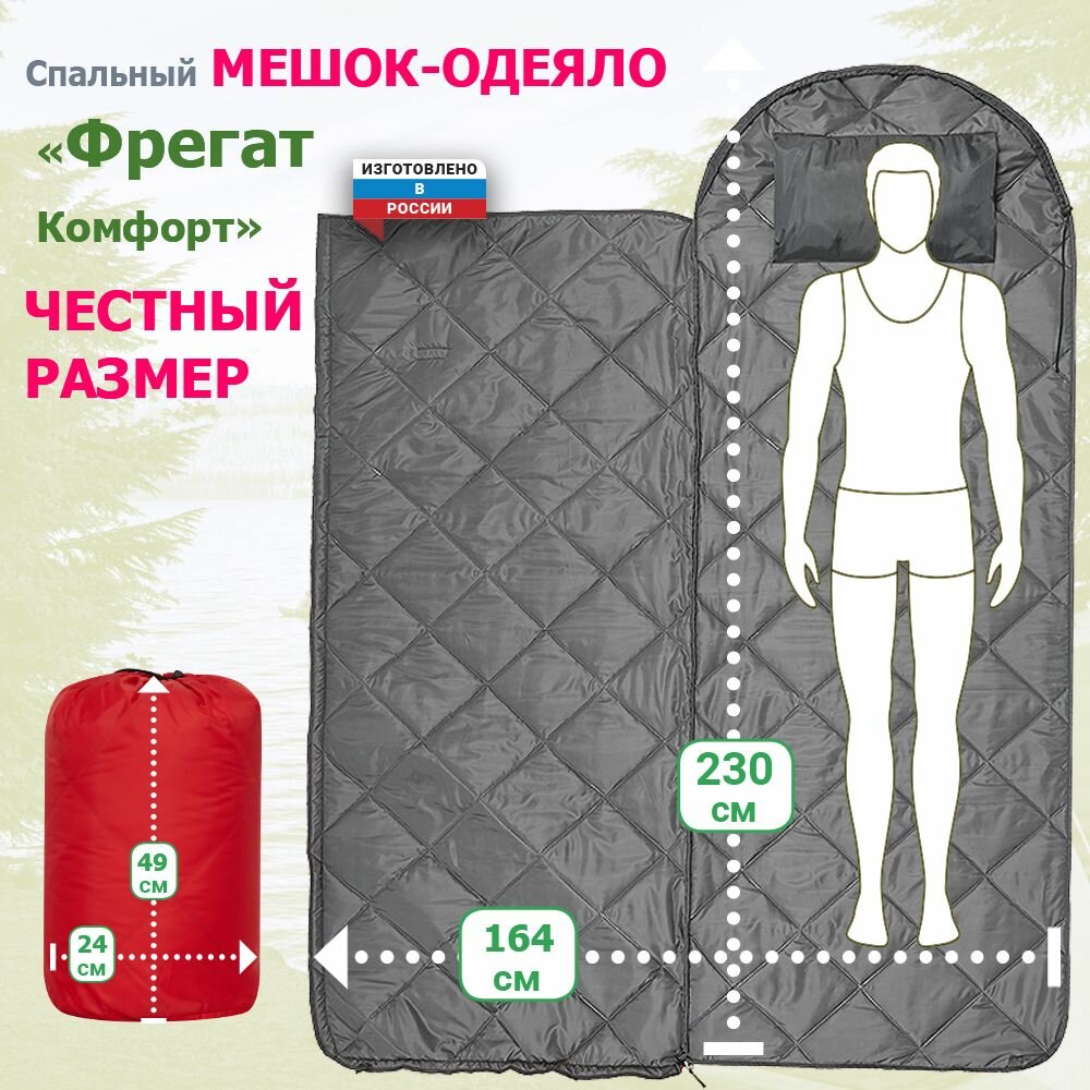 Спальный мешок-одеяло с ультразвуковой стежкой и подголовником Фрегат (150), синий, демисезонный, 85 х 230 см