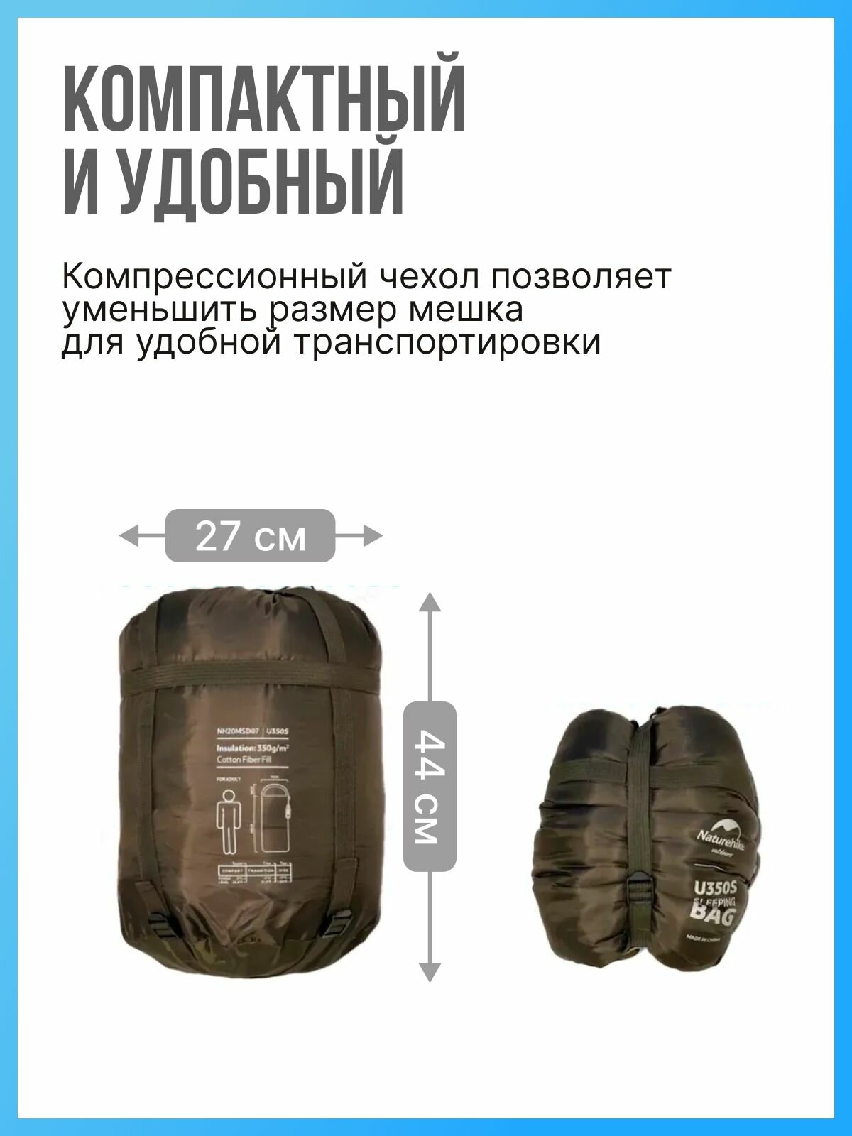 СохранитьМешок спальный Naturehike U350 NH20MSD07 220х75 см, голубой, молния справа интересное: