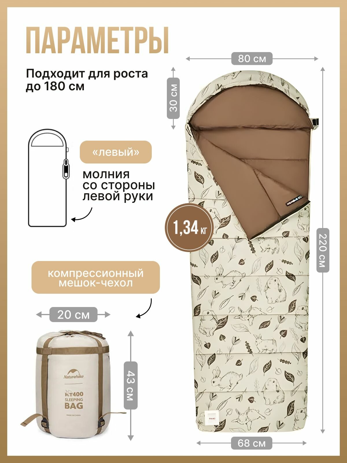 СохранитьМешок спальный Naturehike MT180 CNH22SD015 220х80 см, бежевый, молния слева интересное: