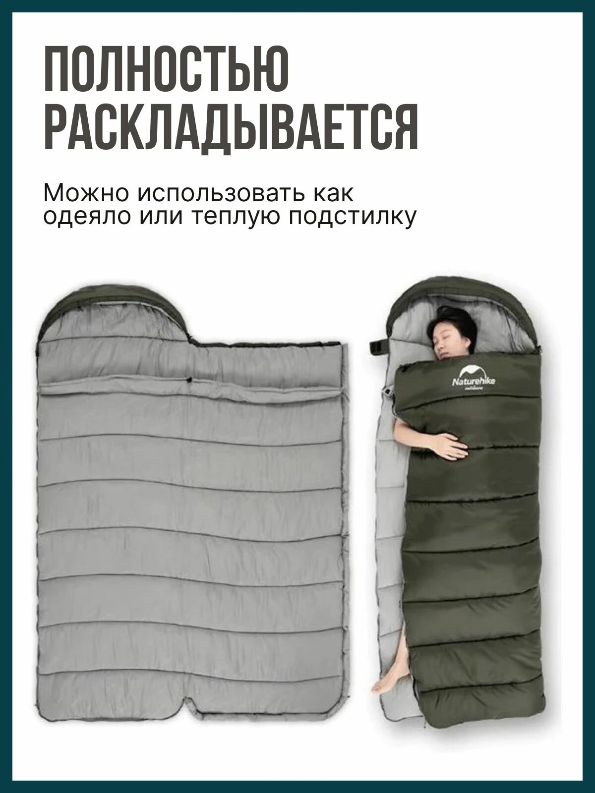 СохранитьМешок спальный Naturehike U350 NH20MSD07 220х75 см, темно-зеленый, молния слева интересное: