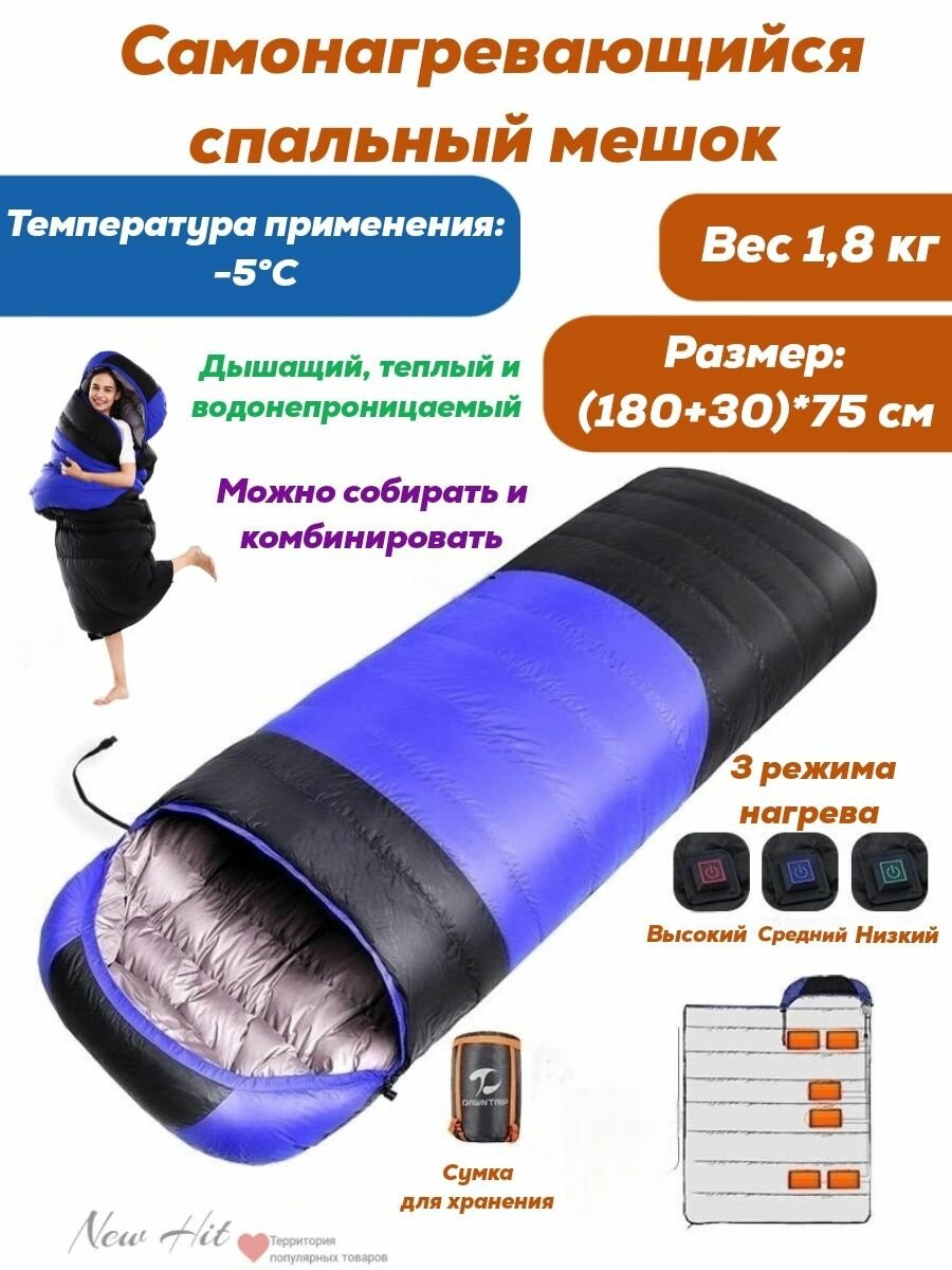 Туристический спальный мешок с подогревом 1.8 кг. интересное: