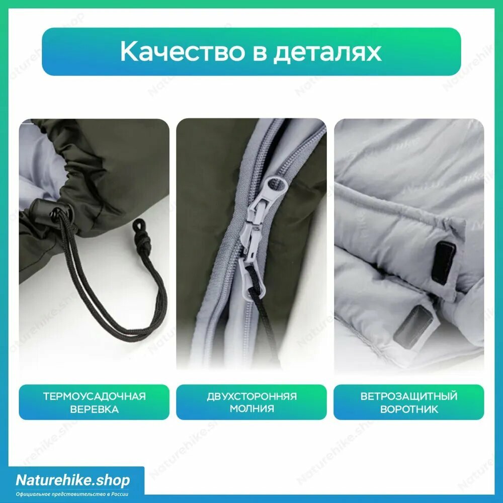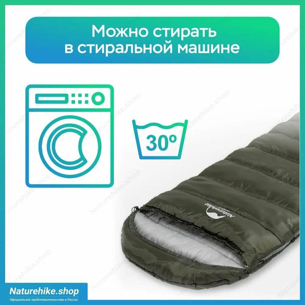 Спальный мешок Naturehike u350s / до -17C, вес 1.7 кг, зеленый, молния справа / превращается в двухместный спальник