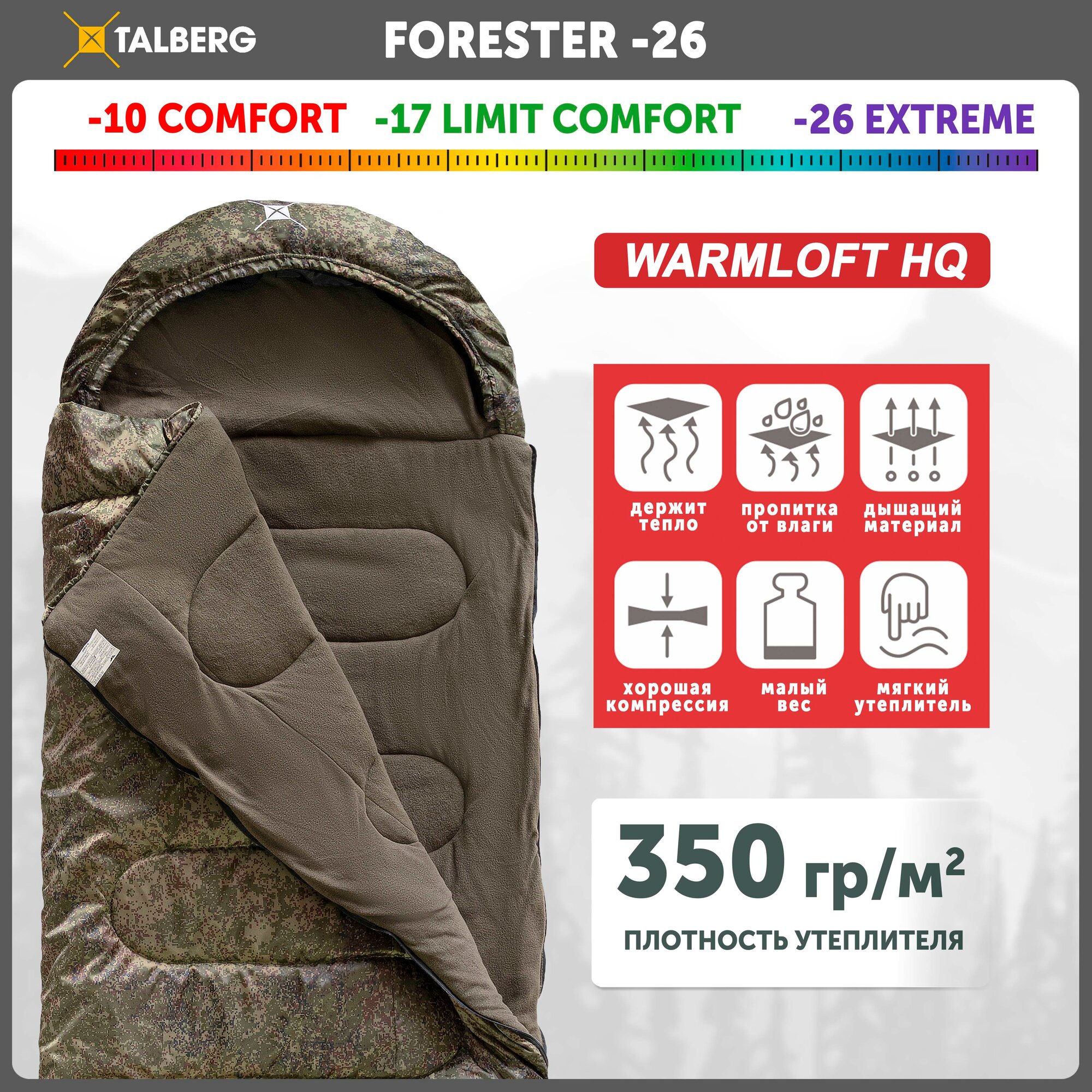 Спальный мешок-одеяло Talberg FORESTER -26°С, цифра , правый интересное: