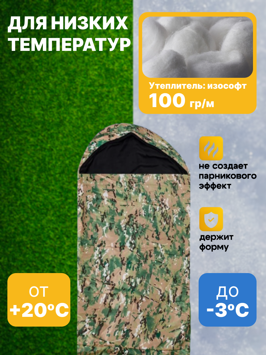 Мешок спальный туристический -3, Посейдон, Спальник Poseidon Камуфляж интересное:
