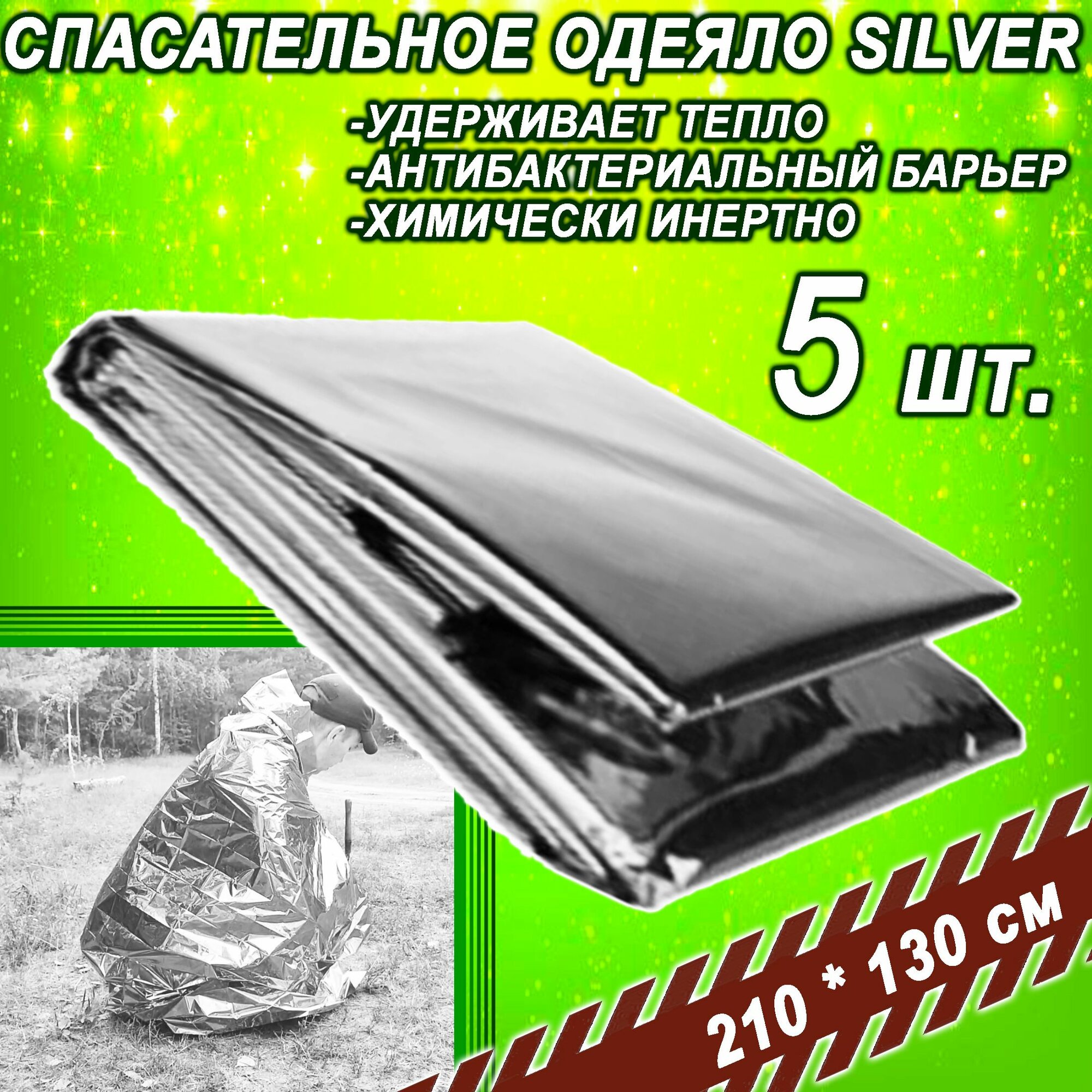 Термоодеяло спасательное для обертывания многоразовое Юпитер одеяло изотермическое туристическое SILVER
